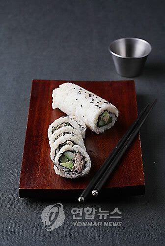 | ▲ This photo taken on July 6, 2010, shows a plate of sushi with wooden chopsticks. (Yonhap) |