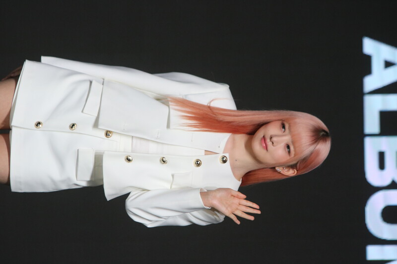 These photos show IVE's Gaeul from the media showcase of the six-piece group's first LP "I've IVE." She and Gaeul participated in writing the lyrics for the rap part of the third track "Kitsch."