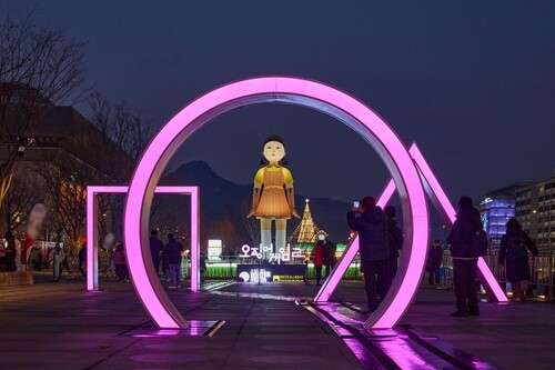 | ▲ A statue of Young-hee is erected at Gwanghwamun Square in central Seoul, in this photo provided by Netflix. (PHOTO NOT FOR SALE) (Yonhap) |