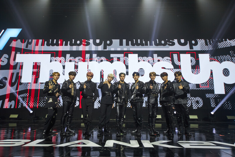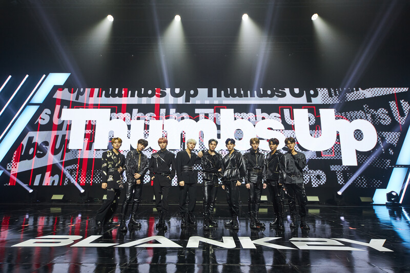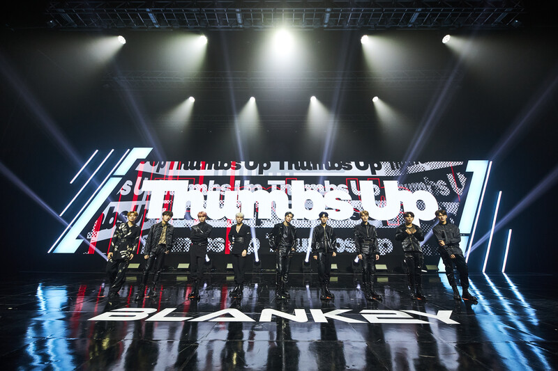 These photos, provided by Keystone Entertainment, shows all the members of BLANK2Y posing as a group at the 1st Mini Album Thumbs Up Debut Showcase. Their first mini album "'K2Y I : CONFIDENCE Thumbs Up" will be released today at 6 p.m.