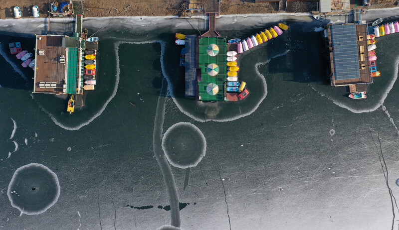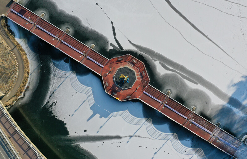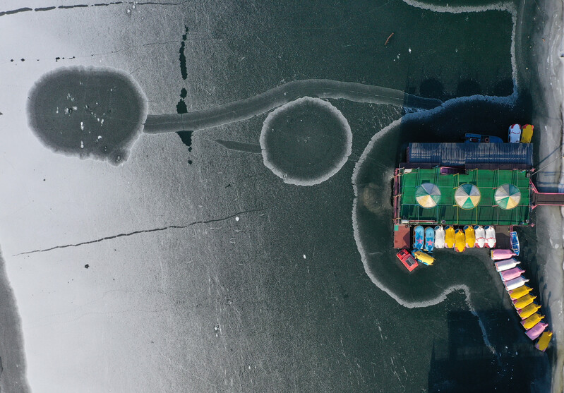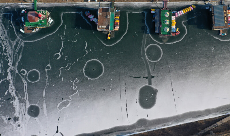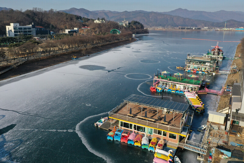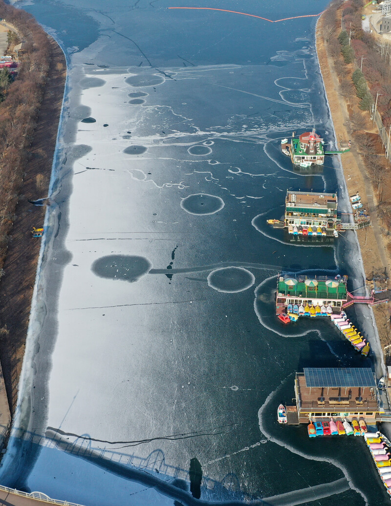 CHUNCHEON, Jan. 3 (Yonhap) -- On the morning of the 3rd, when the cold wave warning was issued, centering on the mountains and inland of Gangwon-do, Gongjicheon Stream across Chuncheon has frozen.
