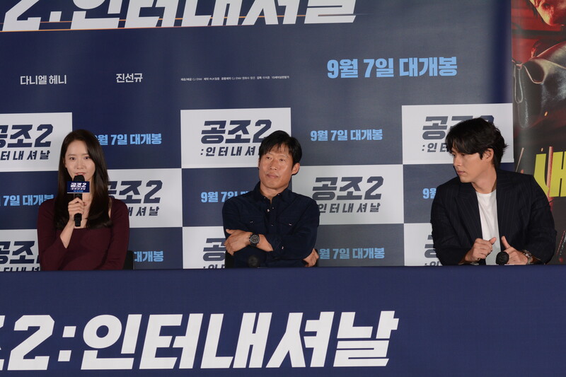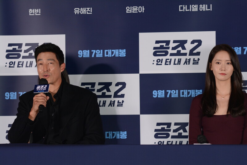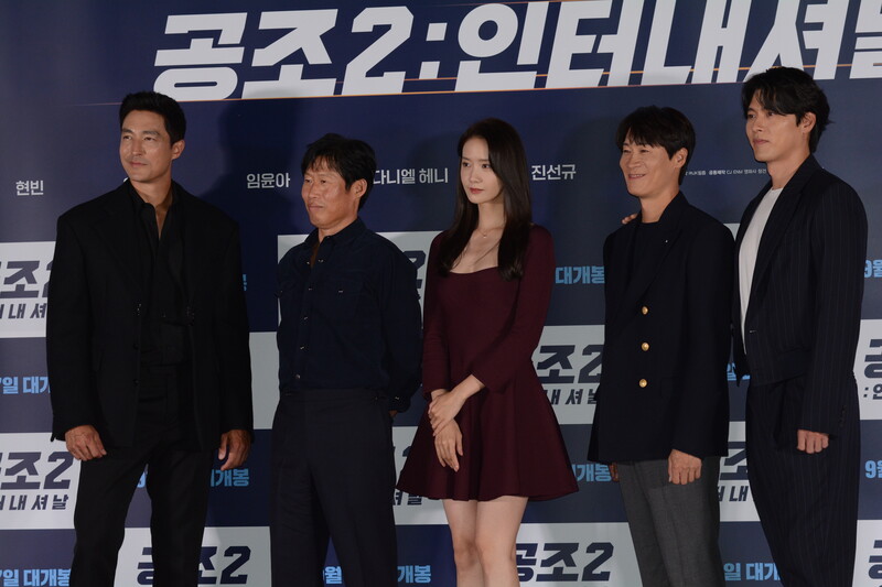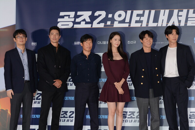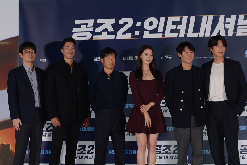 These photos, taken during the press conference of the upcoming South Korean movie "Confidential Assignment 2 International" show actor Hyunbin, Daniel Henney, Yoo Hae-jin, Jin Seon-kyu and actress Im YoonA.