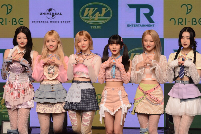 These photos taken during the media showcase of K-pop girl group TRI.BE's second mini album "W.A.Y" show individual and group photos of the members.