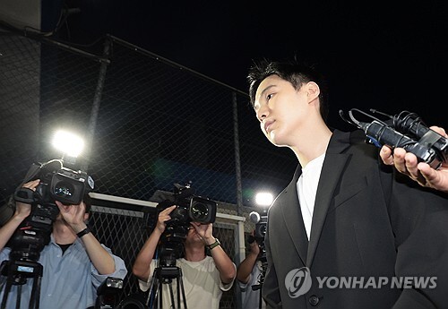| ▲ BTS' Suga heads to the Yongsan Police Station for questioning over alleged drunk driving, on Aug. 23, 2024. (Yonhap) |