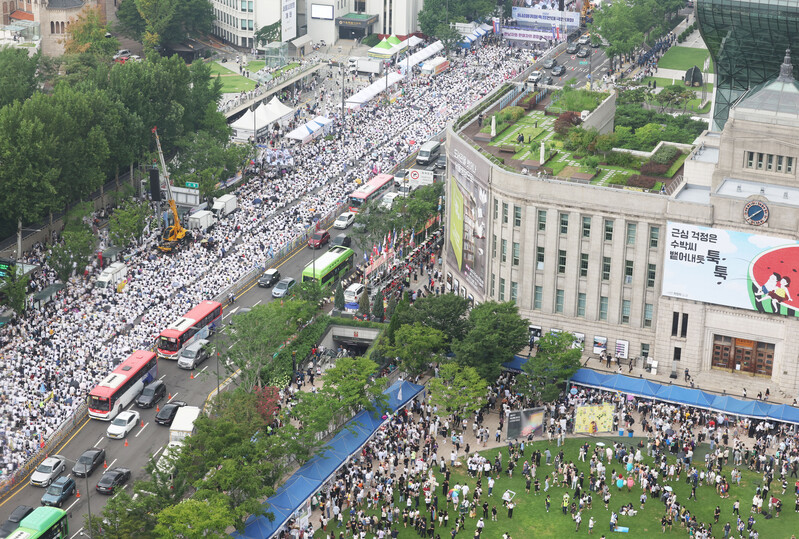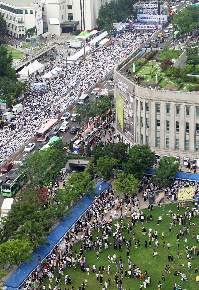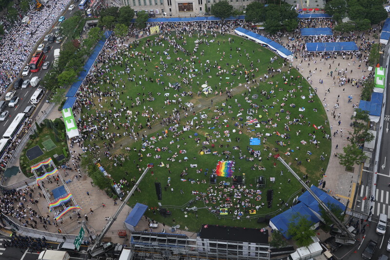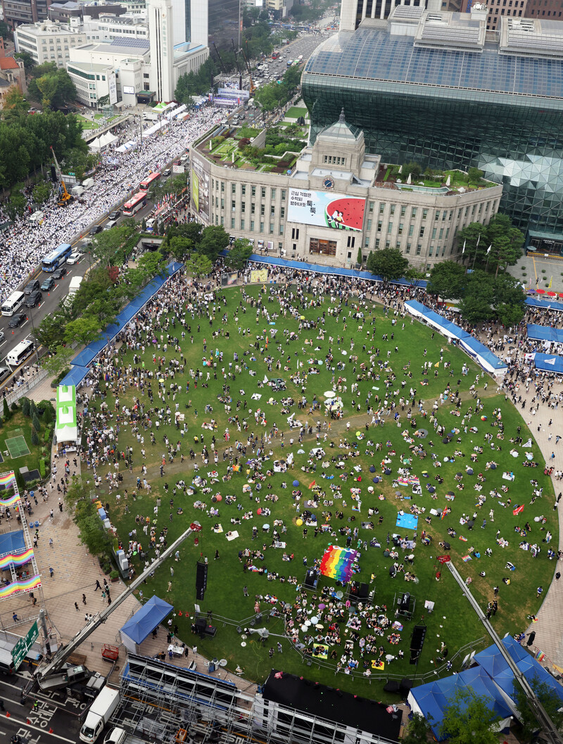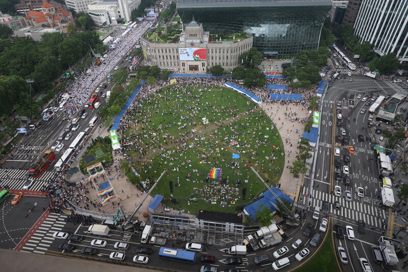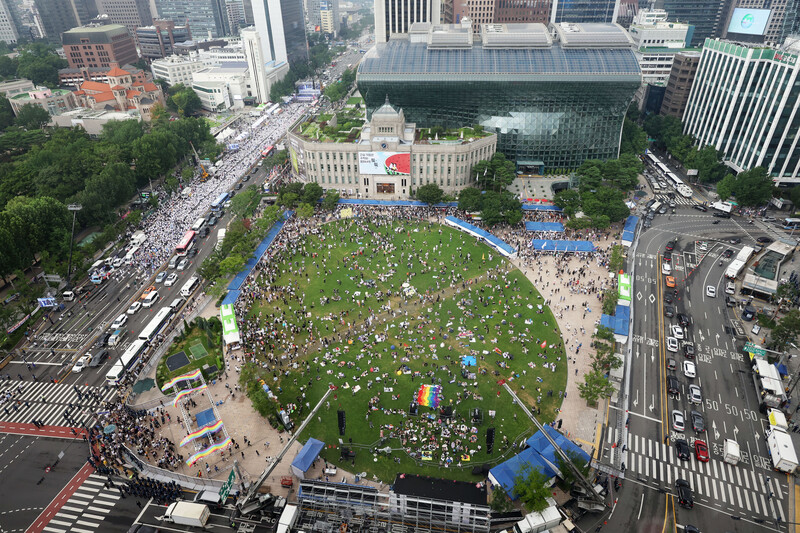 The 23rd annual Seoul Queer Culture Festival is under way at Seoul Plaza in Seoul on July 16, 2022. (Yonhap)