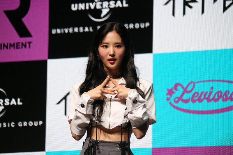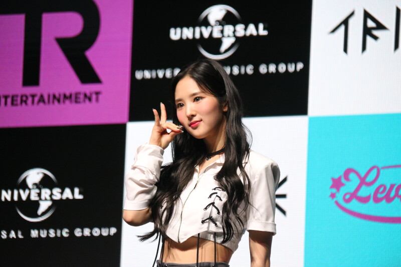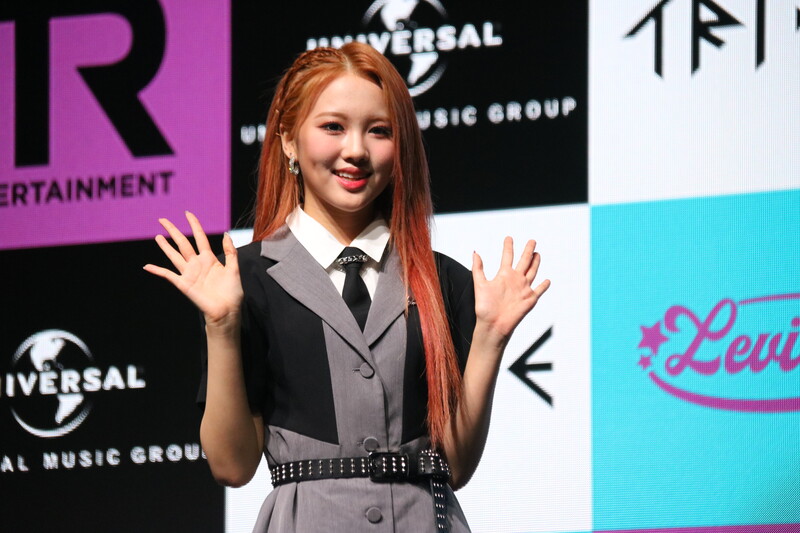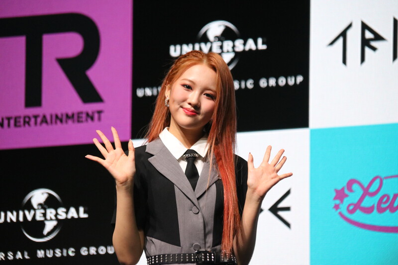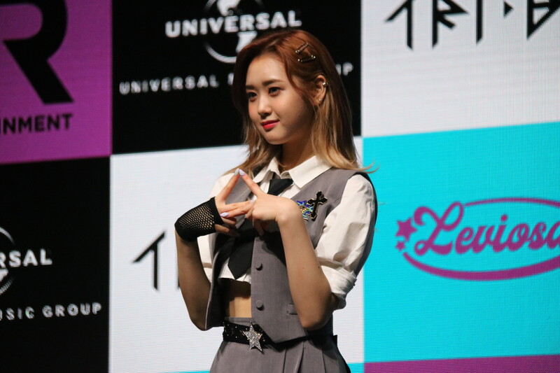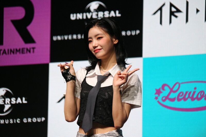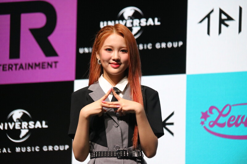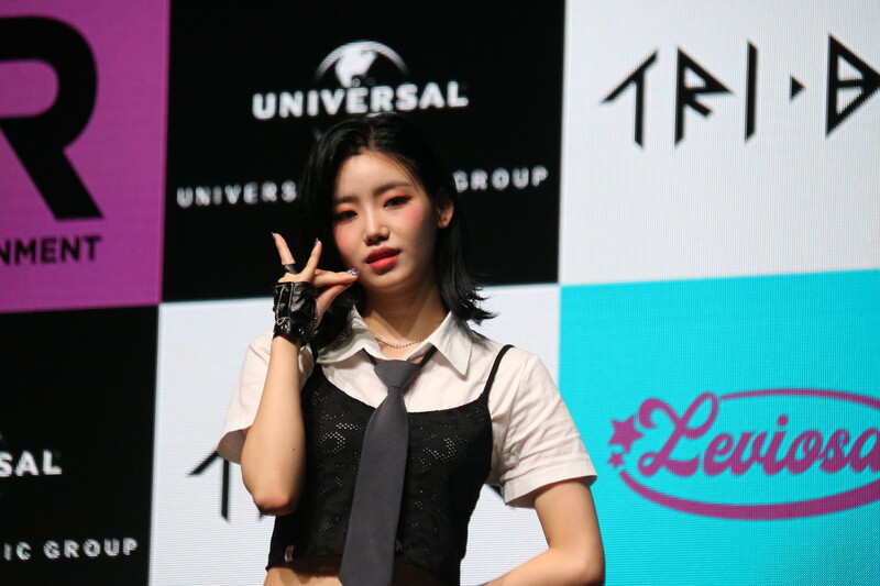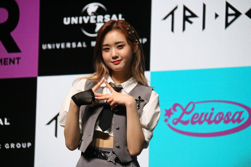 These photos show Tri.be answering Q & A and posing for the press during a media showcse for their 3rd single album "LEVIOSA," which will be released at 6 p.m. August 9.