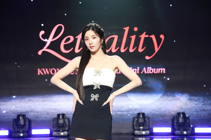 These photos, provided by woollim ENT, show singer Kwon Eun-bi during the media showcase for third mini album "Lethality" which will be released on Oct. 12 at 6 p.m. (KST).