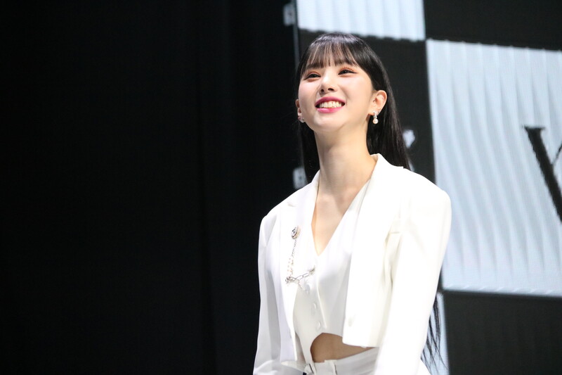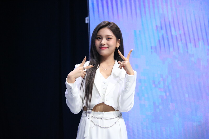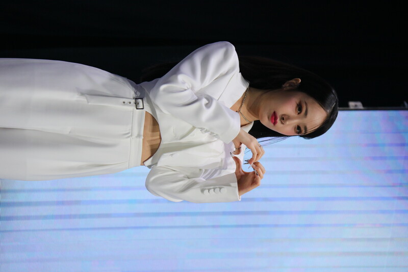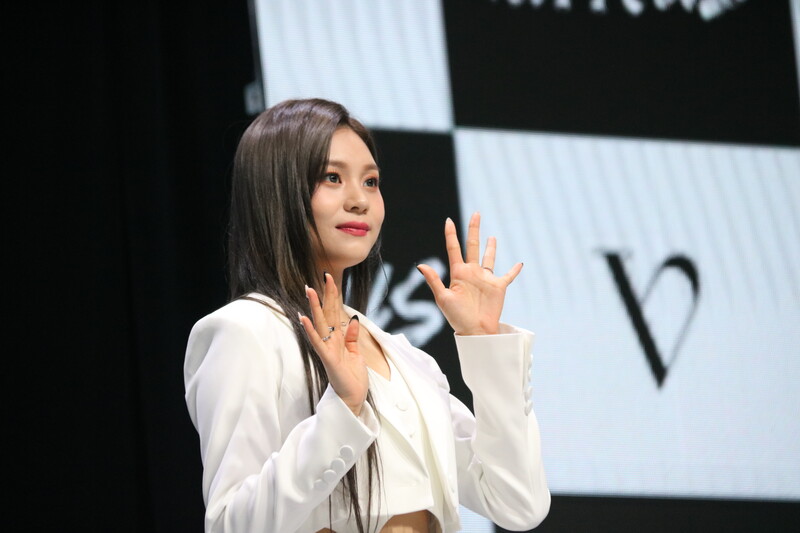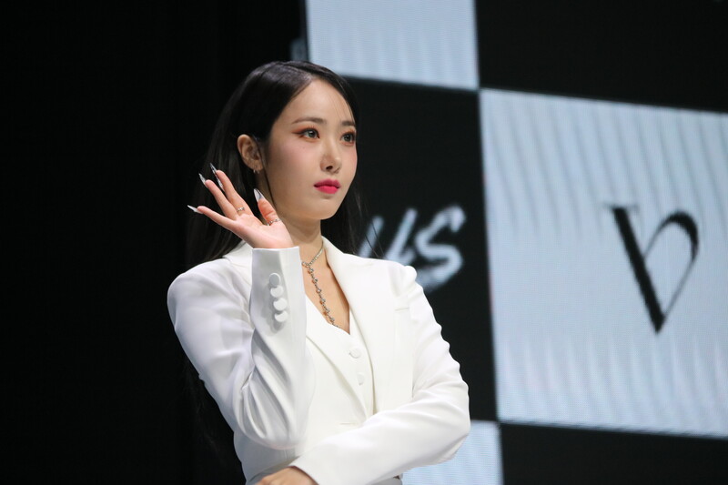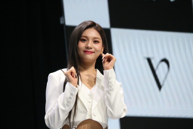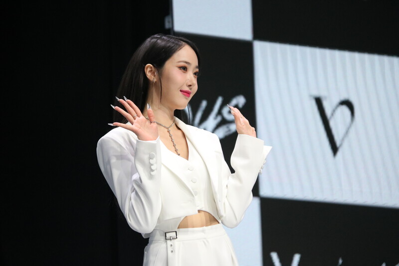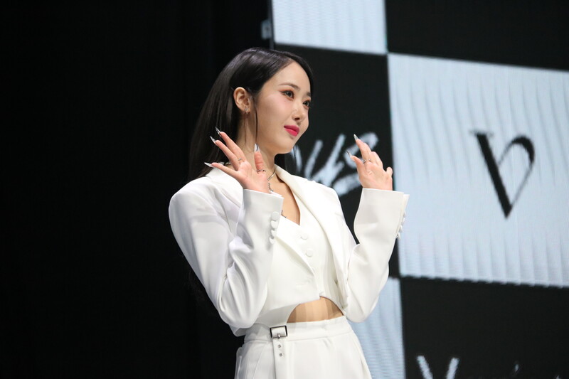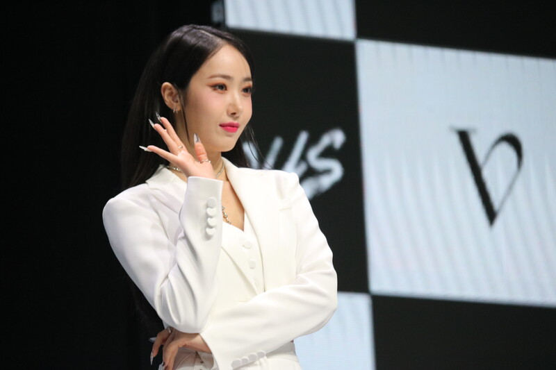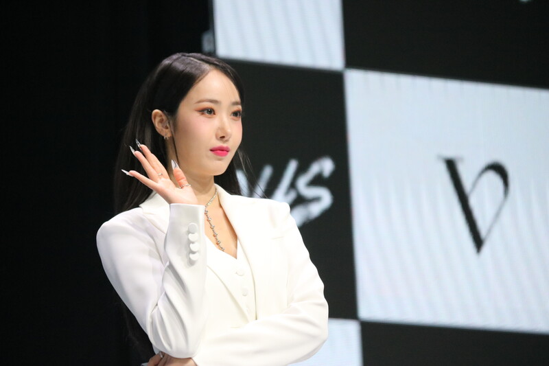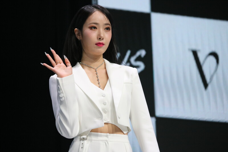 These photos show VIVIZ member EUNHA, SINB, and UMJI from the media showcase for their 3rd mini album "VarioUS."