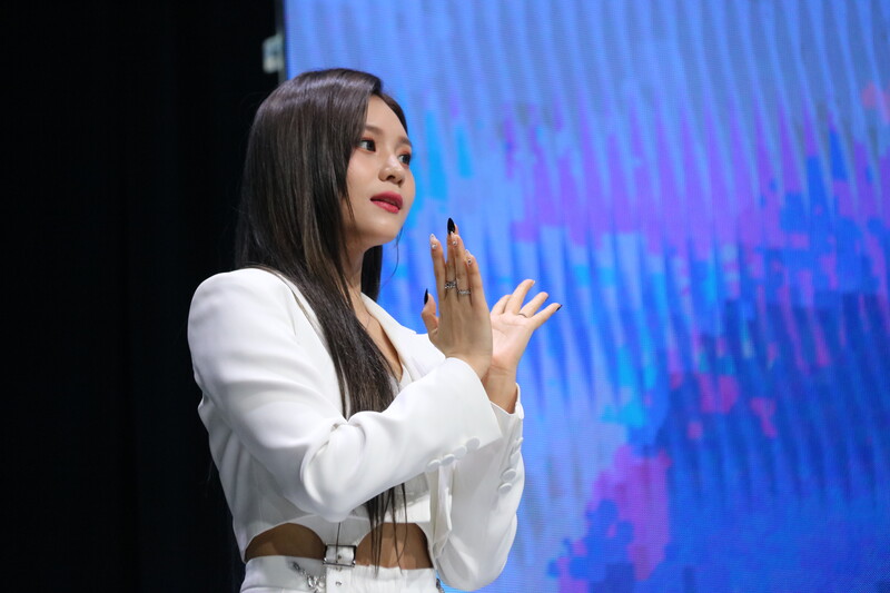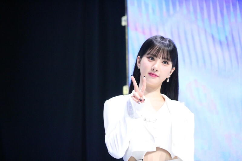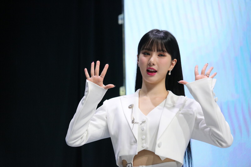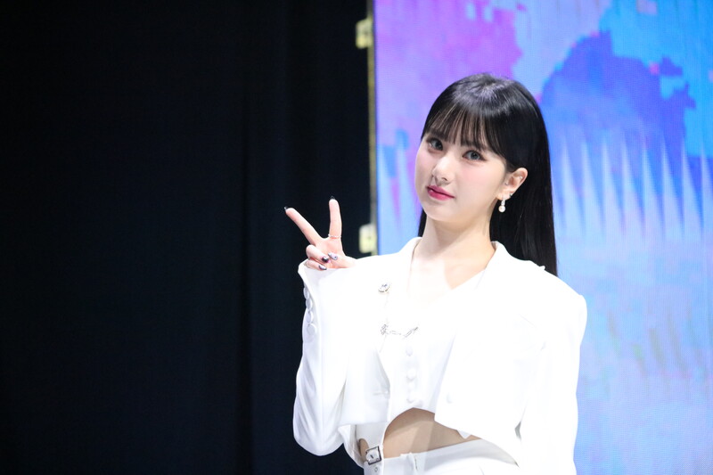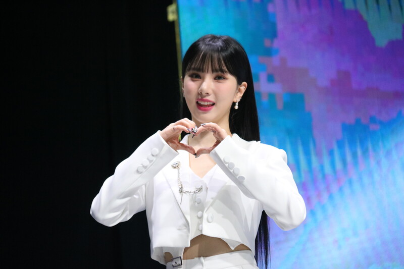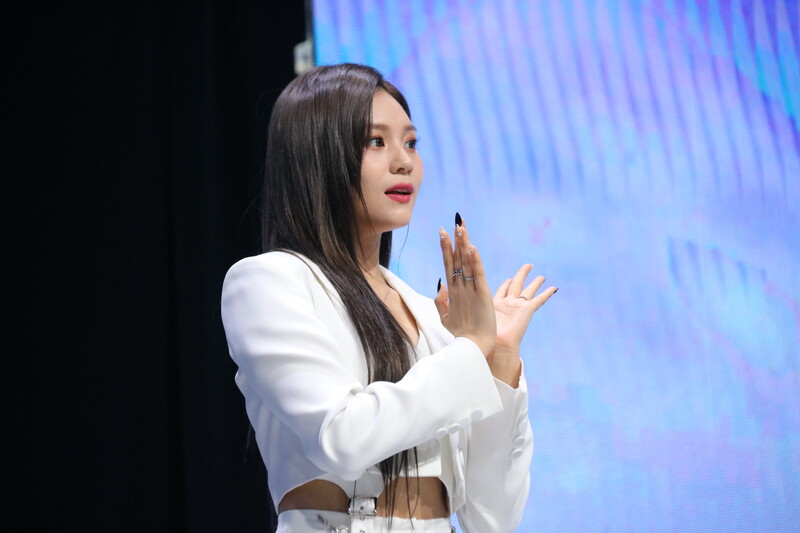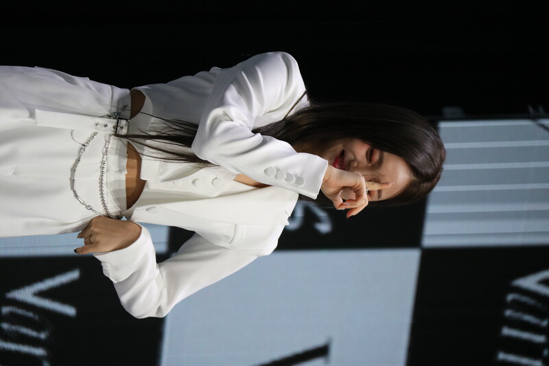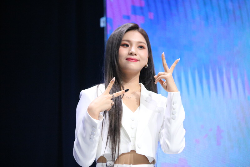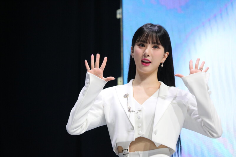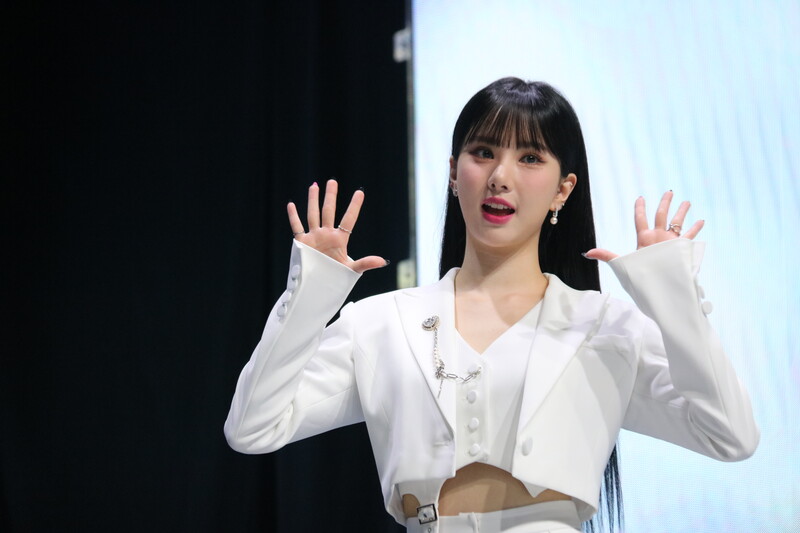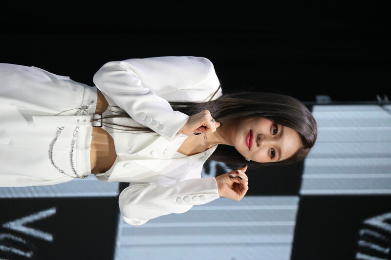 These photos show VIVIZ member EUNHA, SINB, and UMJI from the media showcase for their 3rd mini album "VarioUS."