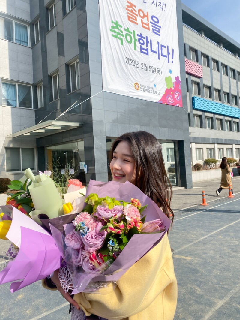 These photos, provided by OUI Entertainment, show actress Kim I On who graduated from Anyang Arts High School on Thursday.