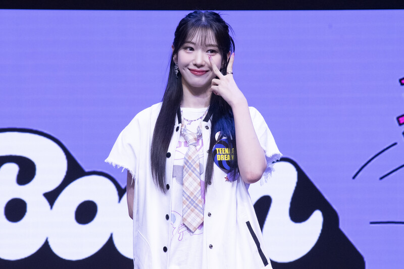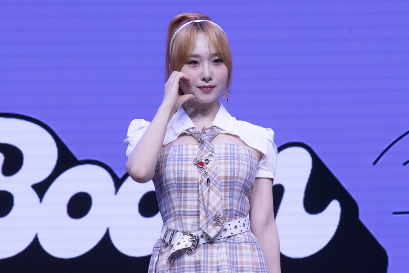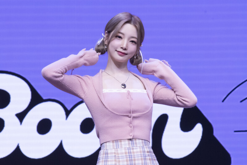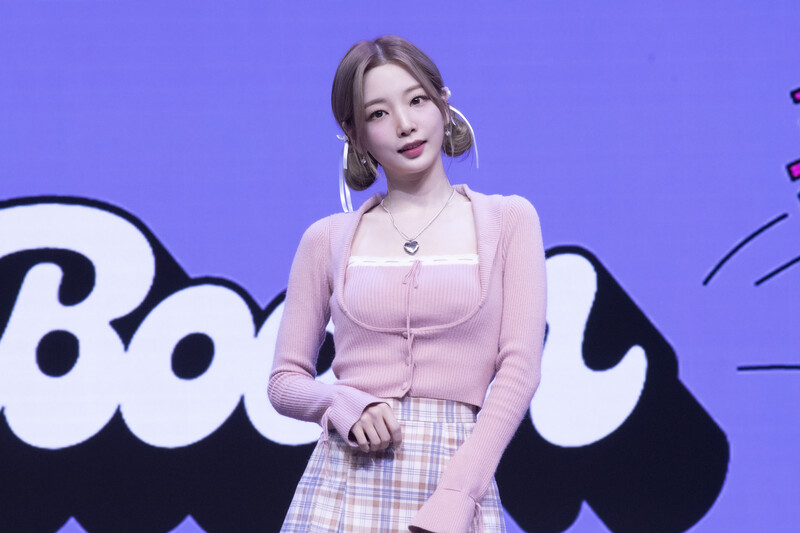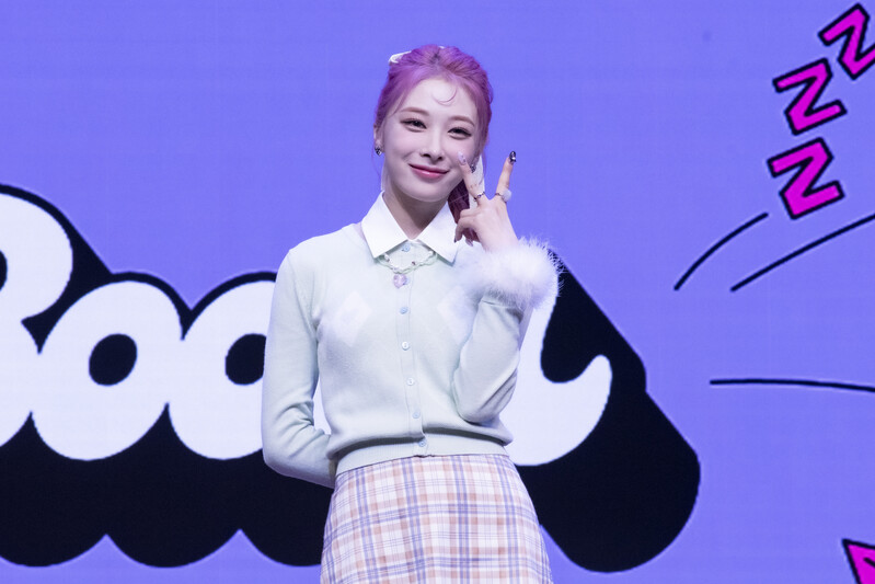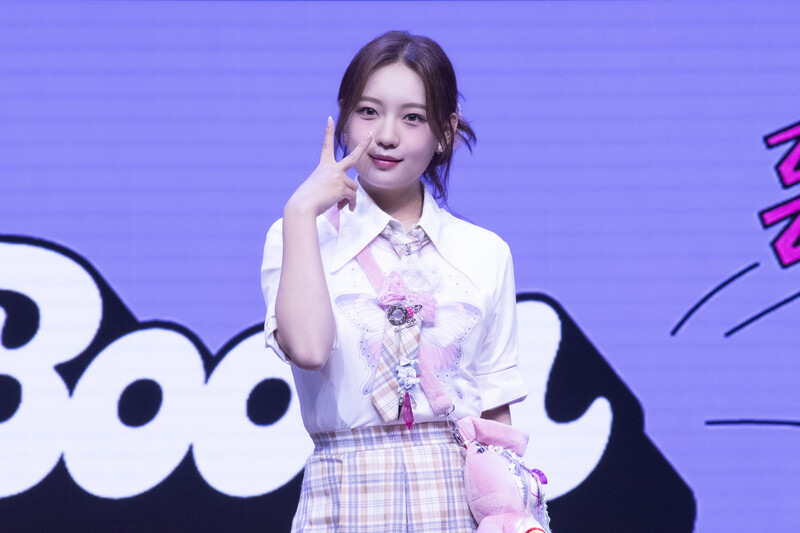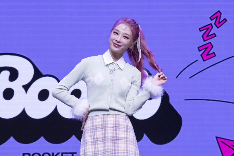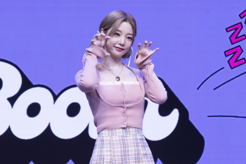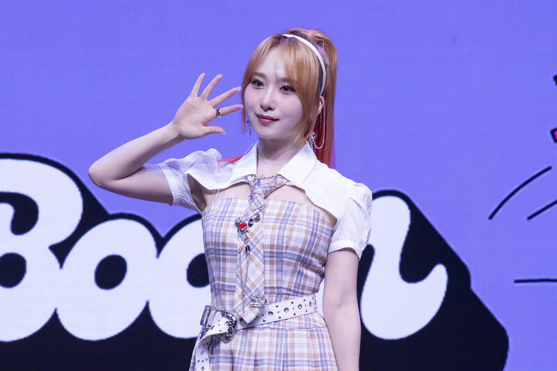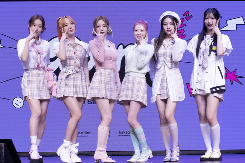 These photos taken during the media showcase of K-Pop girl group Rocket Punch's single album "Boom" show members posing for their individual and group photos during the event.