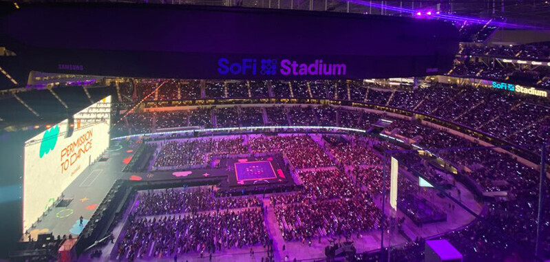 | ▲ This photo, provided by a subscriber on Nov. 28 2021, show the audiences waiting for 2-year-waited BTS' first offline concert taking place at the SoFi Stadium in Los Angeles, America on the 27th (U.S time). (Yonhap) |