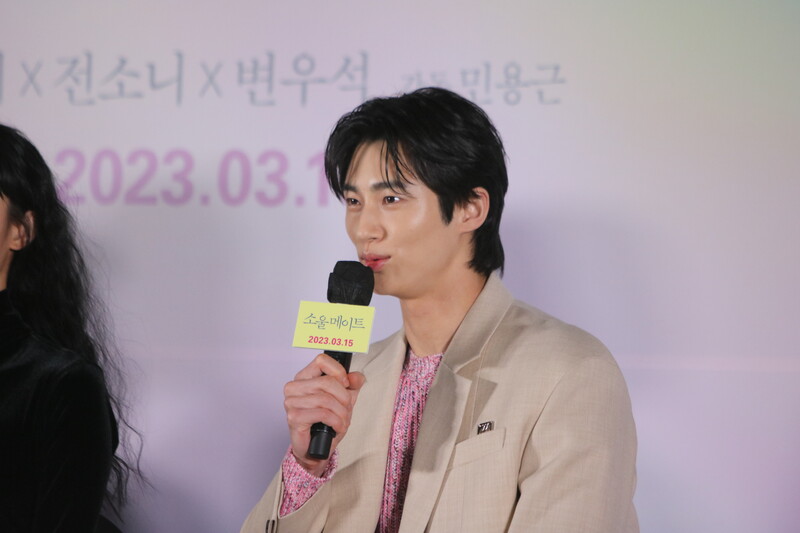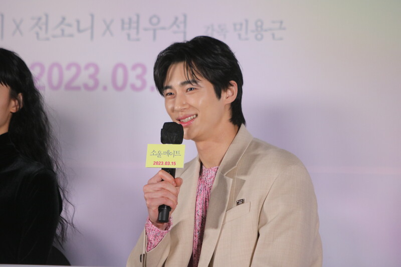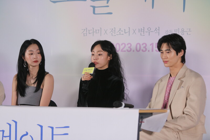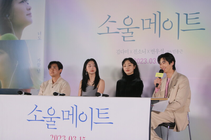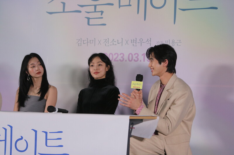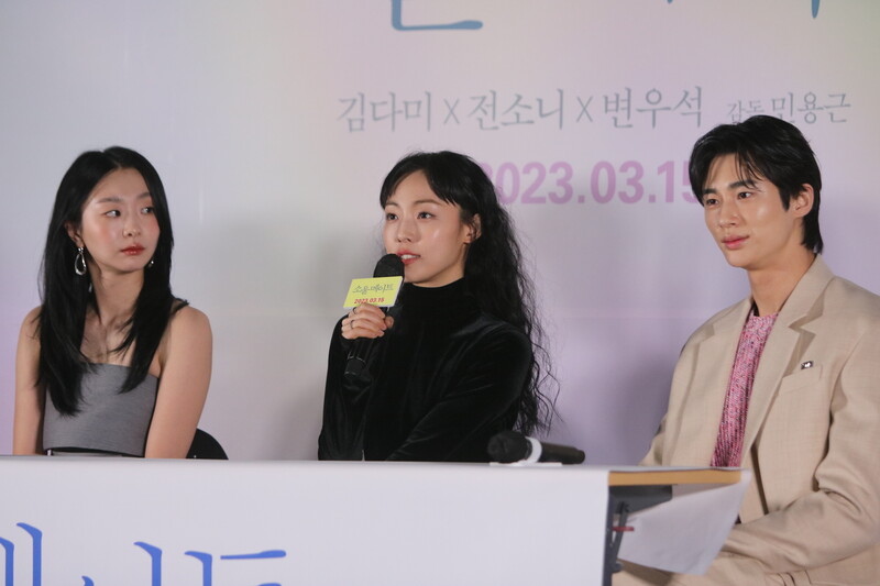 These are the photos from the press conference of upcoming film "Soulmate" starring Kim Dami, Jeon So-nee, and Byeon Woo-seok, which will be released on Mar 15.