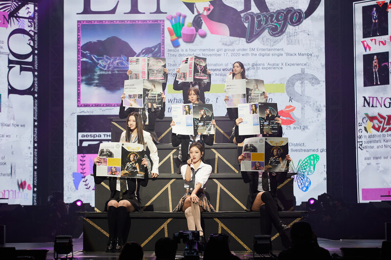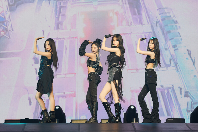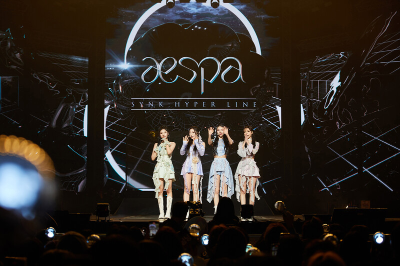 These photos, provided by SM Entertainment, show aespa during their 1st concert "SYNK : HYPER LINE" held in Jamsil Arena.