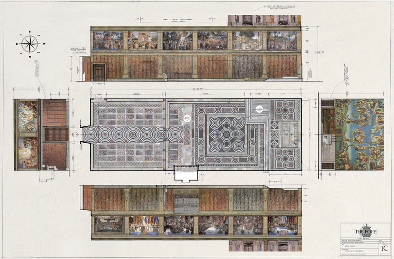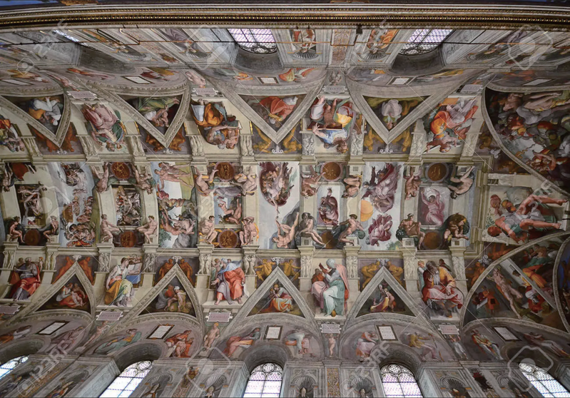 | ▲ Panorama of the Ceiling and Frescoes of the Sistine Chapel. |