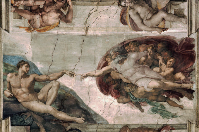 | ▲ Detail of "The Creation of Adam" from "The Creation of the Heavens and Earth." |