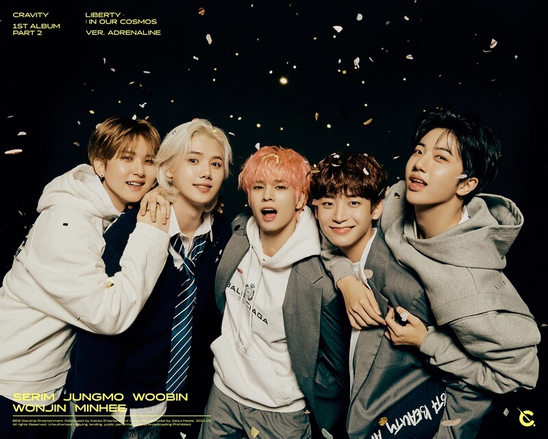 These photos, provided by Starship Entertainment, show CRAVITY, who released the group concept photos in “ADRENALINE” version for the full album part 2 “LIBERTY: IN OUR COSMOS.”