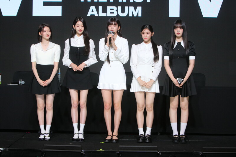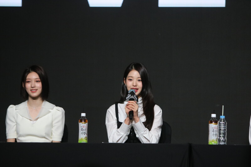 These photos show all members of IVE during the Q&A session of the media showcase of their first LP "I've IVE." This six-piece group participated in writing tracks of their first full-length album.