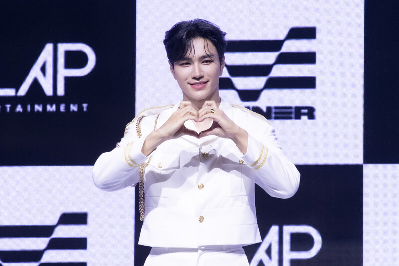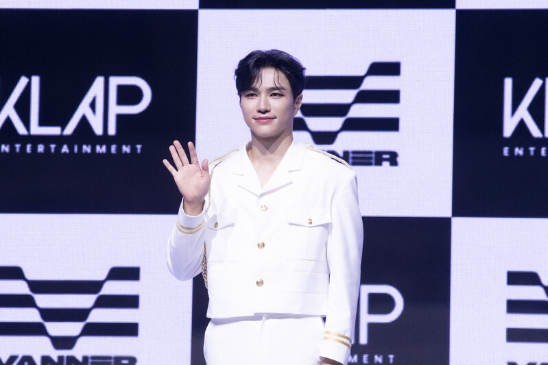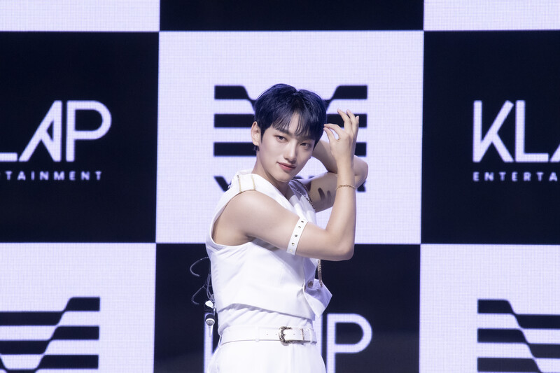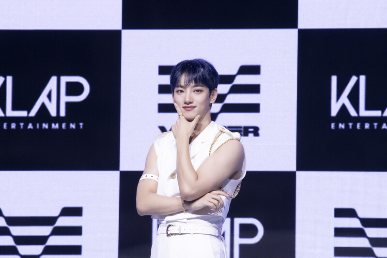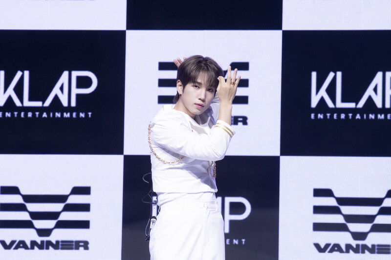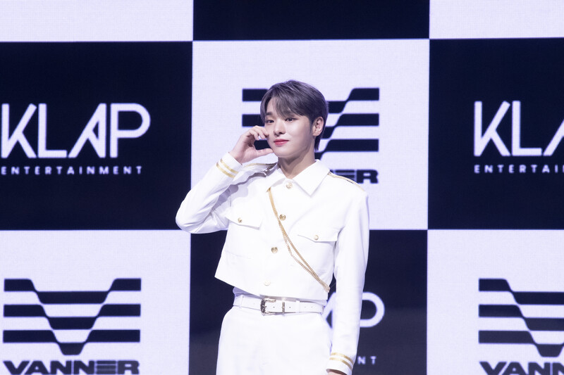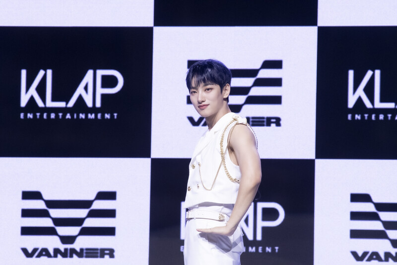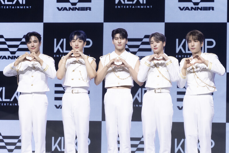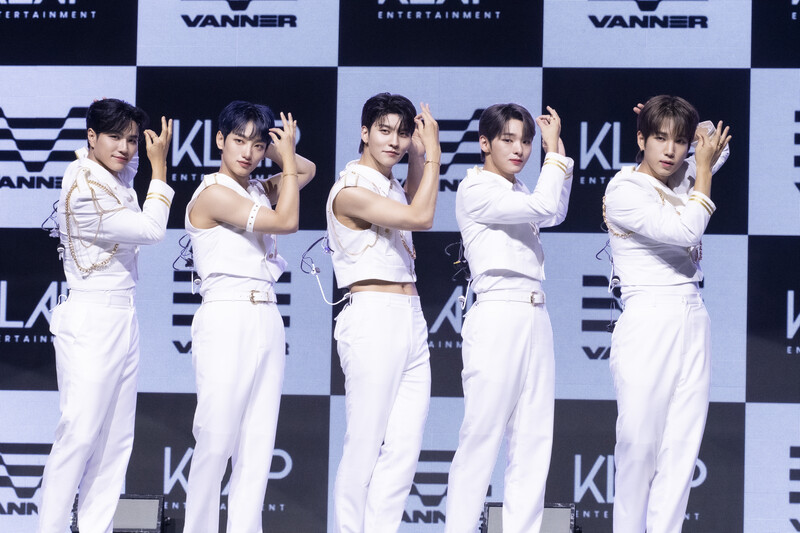 These photos taken during the media showcase of K-pop boy group Vanner's "Veni Vidi Vici" show members posing for their individual and group photos.