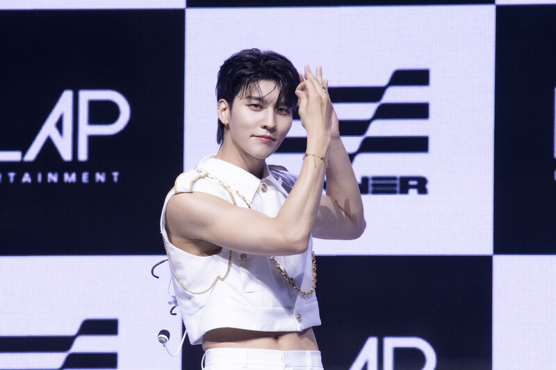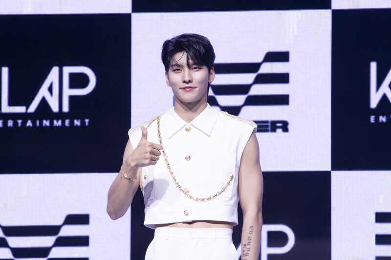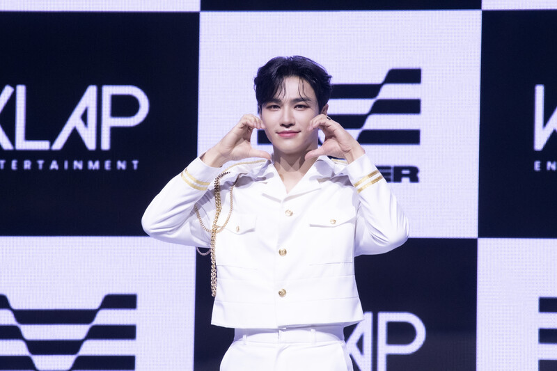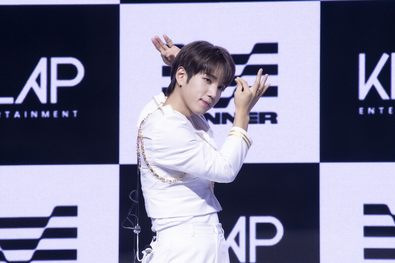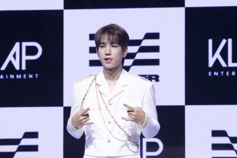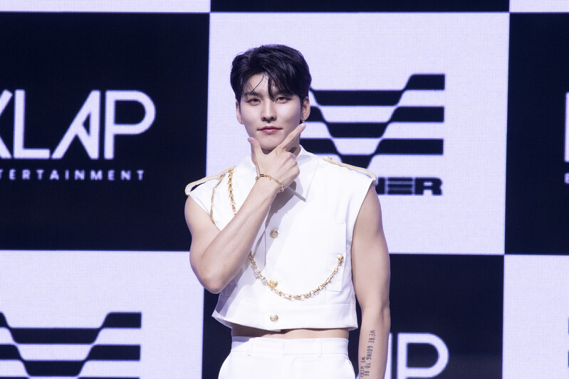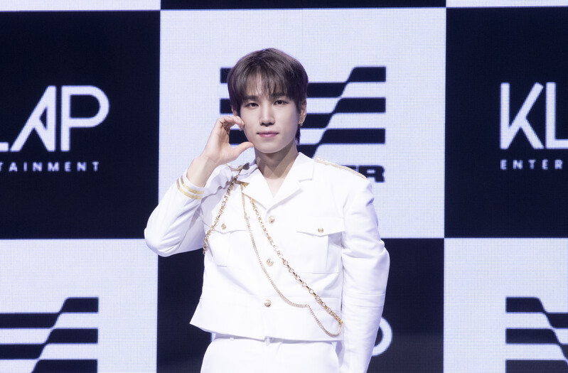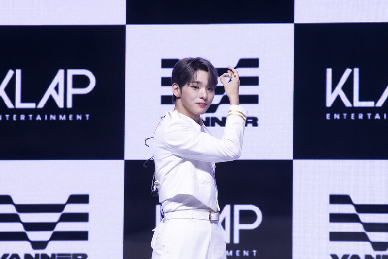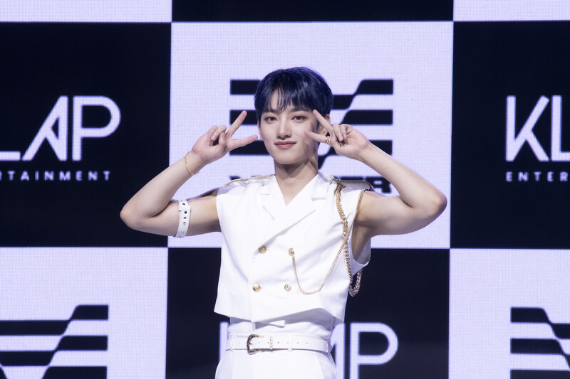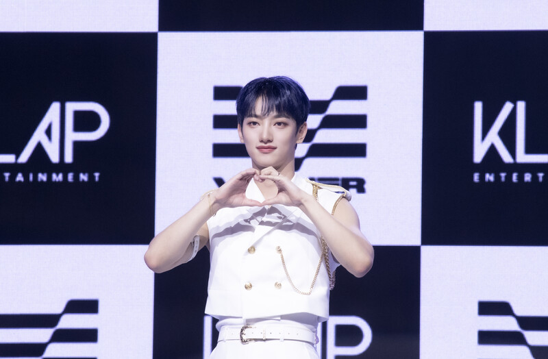 These photos taken during the media showcase of K-pop boy group Vanner's "Veni Vidi Vici" show members posing for their individual and group photos.