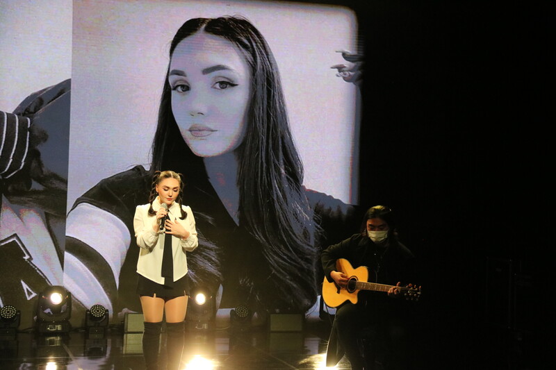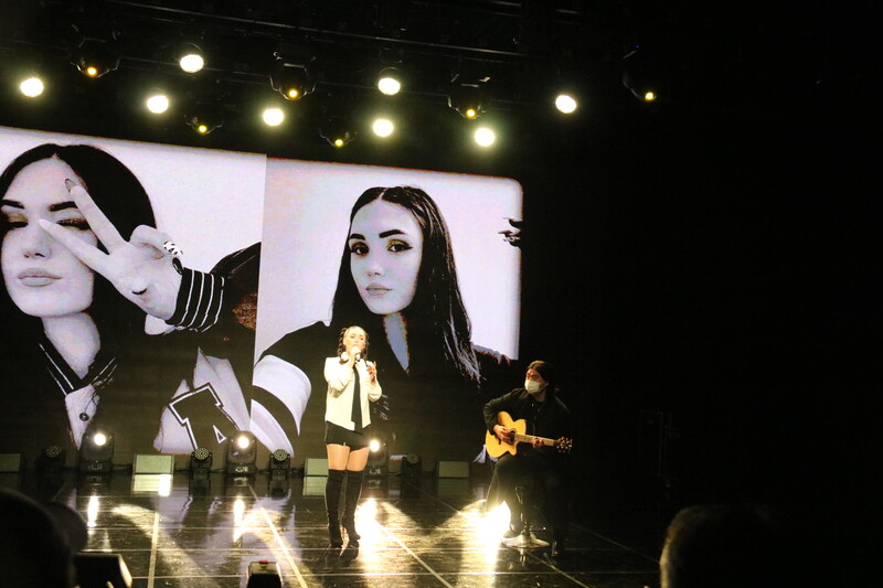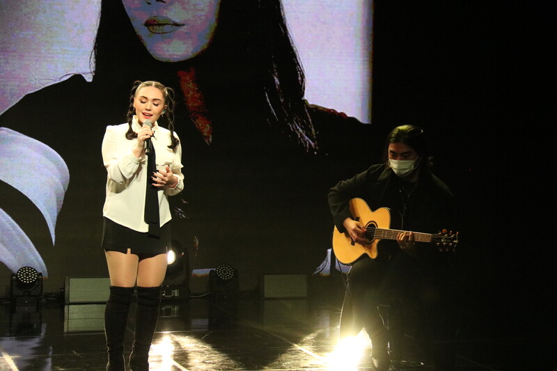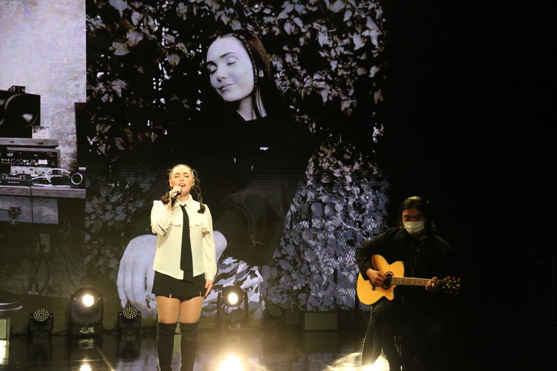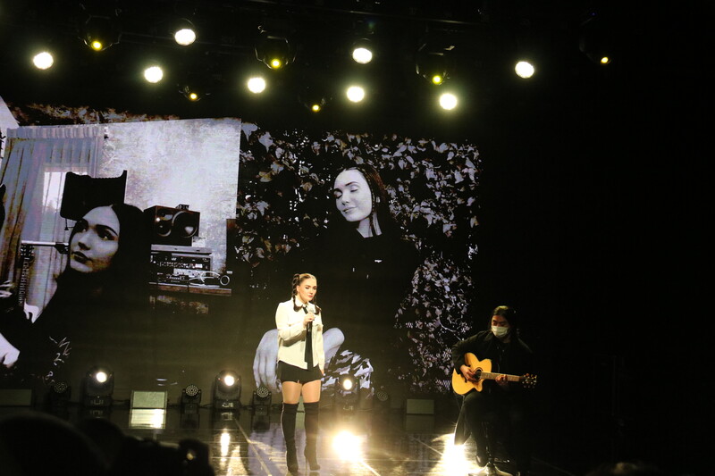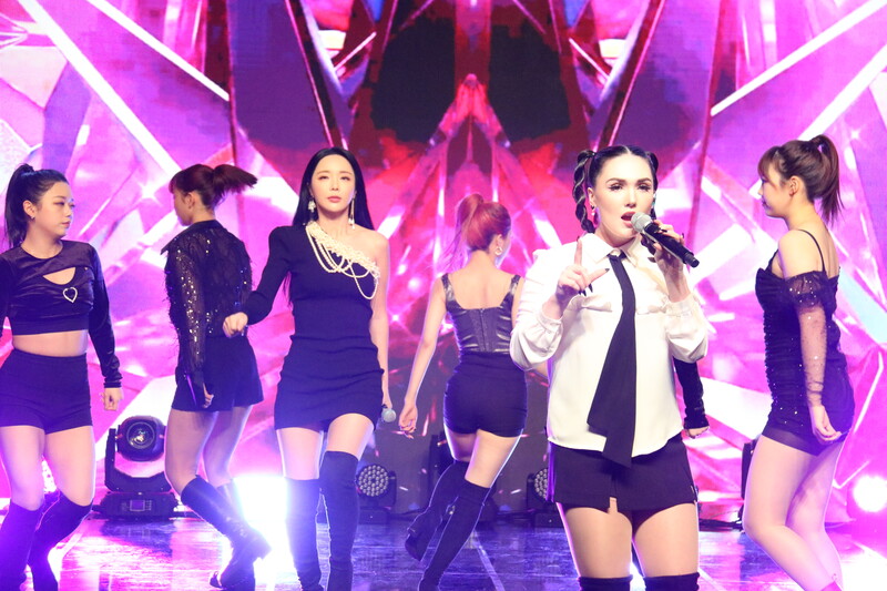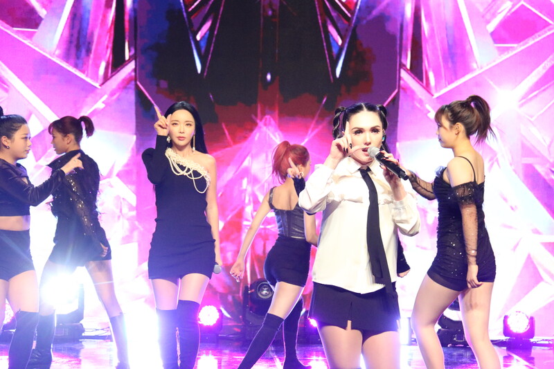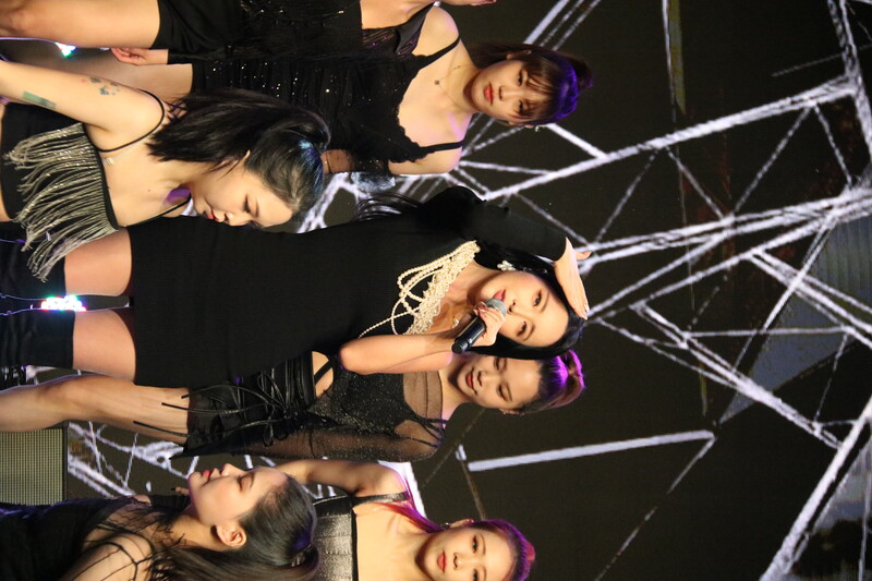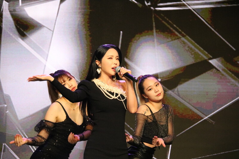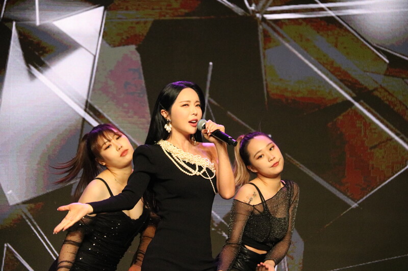 These photos, taken during media showcase of South Korean singer Hong Jin-young's mini album "Color Mood" show artis performing the title track "Girl in the Mirror," and one of the tracks included within the album.
