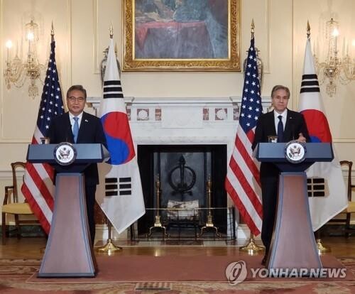 WASHINGTON, June 14 (Yonhap) -- U.S. Secretary Antony J. Blinken has mentioned K-pop groups BTS and TWICE at the news conference with South Korean Foreign Minister Park Jin after their talks in Washington on Monday (EST).