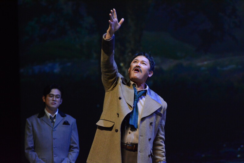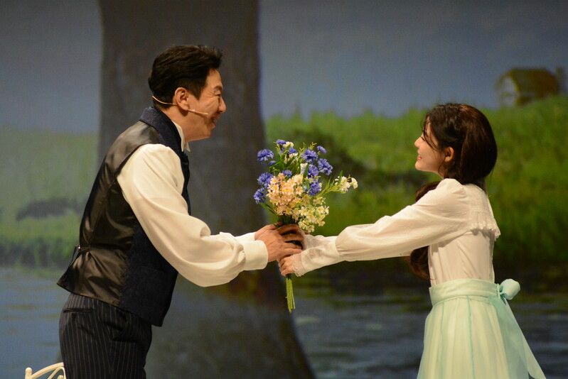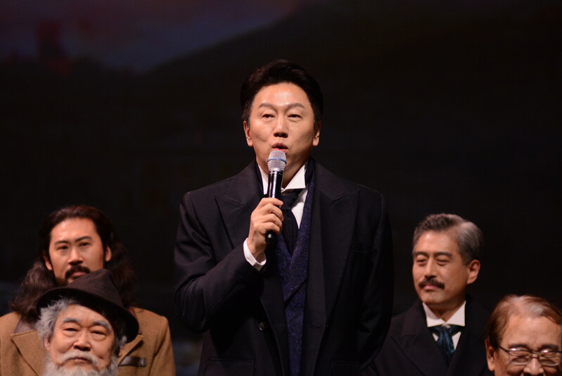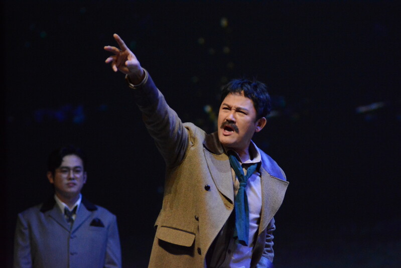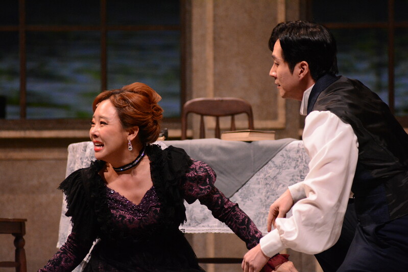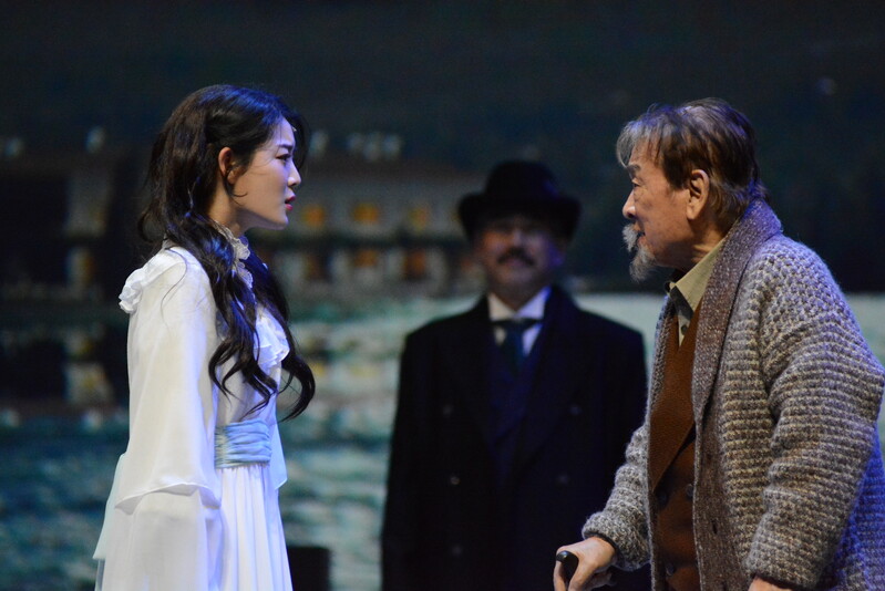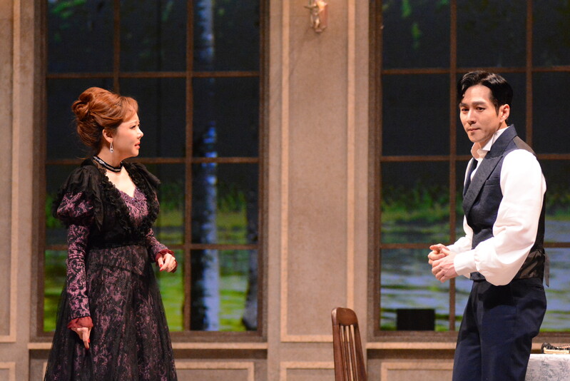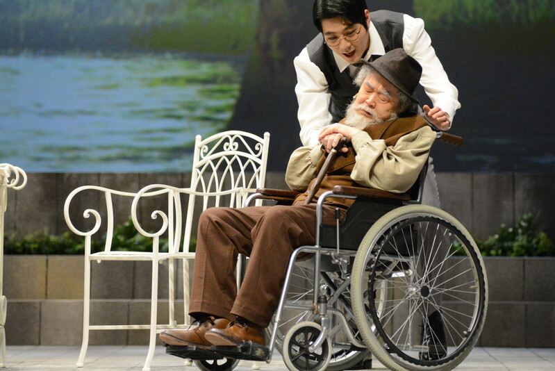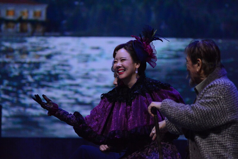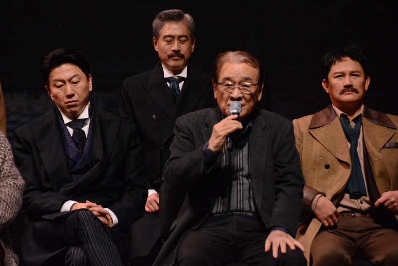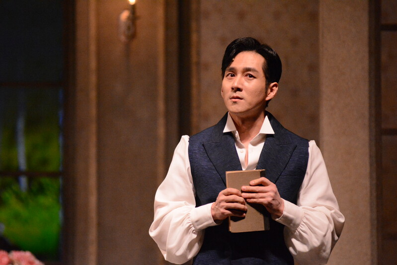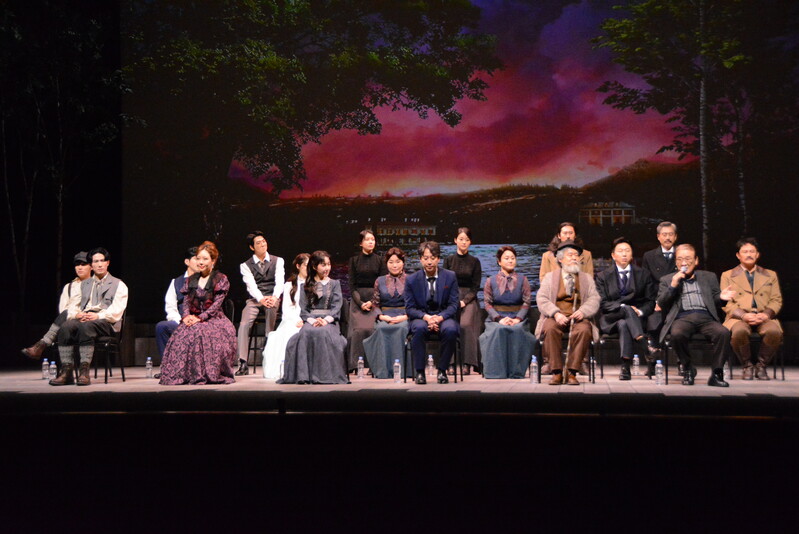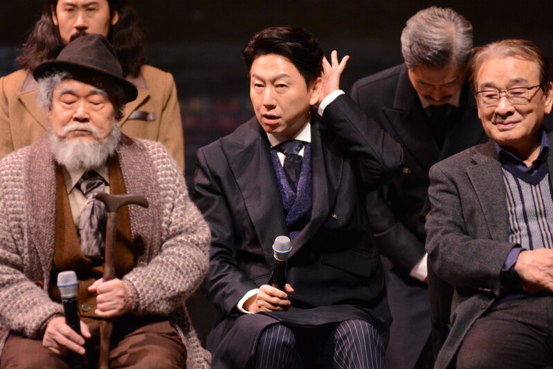These photos taken during the press call of the play "The Seagull" show actor Lee Soon-jae, Oh Man-seok, Kim Soo-ro, actress So Yu-jin, Jin Ji-hee and more of the casts showcasing high light scenes and answering questions.