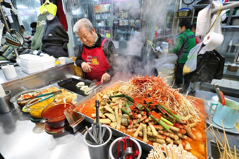 The scene where Korean politicians eat a bite of Eomuk skewers at stalls often appears when they visit the market.