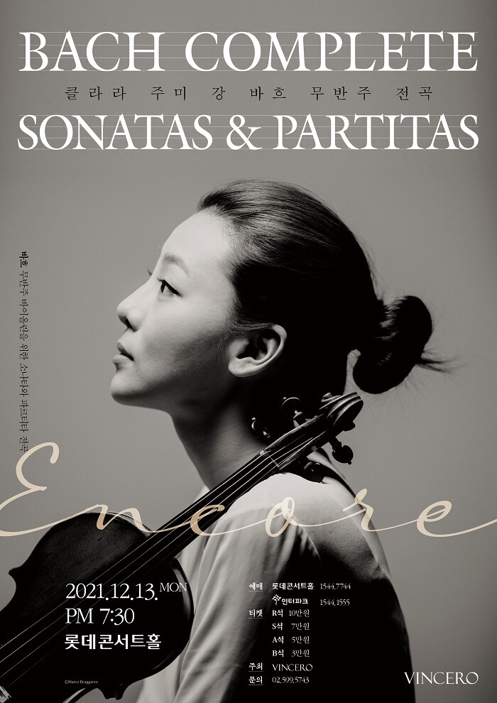 | ▲ This photo, provided by Vincero Arts Management & Entertainment, shows the concert poster for Korean-German violinist Clara-Jumi Kang's "Bach Complete Sonatas & Partitas." (PHOTO NOT FOR SALE) (Yonhap) |