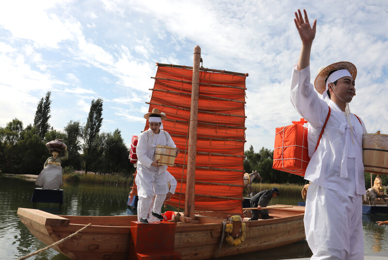 | ▲ This photo, shows the reenactment of the Hwangpo sailboat in the 12th Maponaru Shrimp Festival. (Yonhap) |
