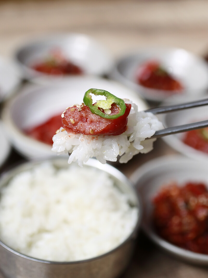 According to Doosan Encyclopedia, broadly, Jeotgal also includes “sikhae,” which is made by marinating fish with rice, salt, red pepper powder, malt or Nuruk, and “Aekjeot” (fish sauce) which is made by grinding jeotgal into liquid.