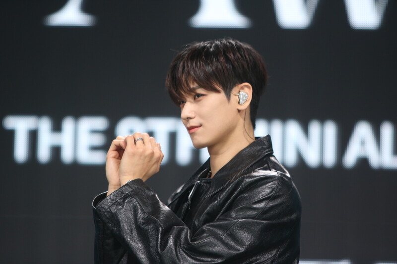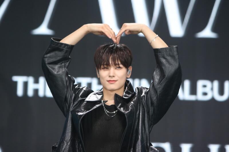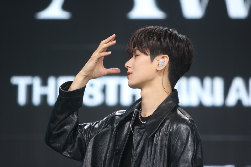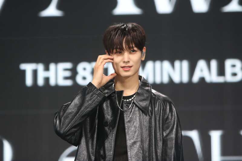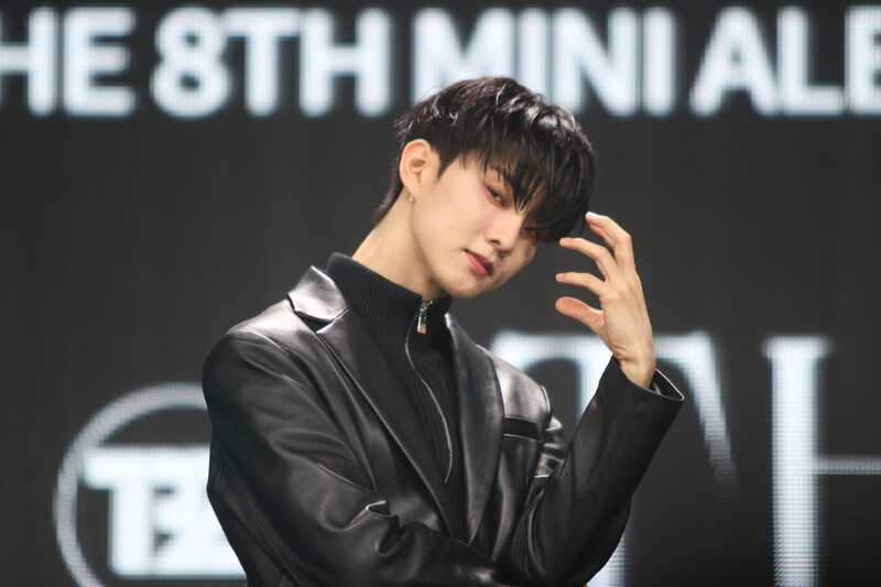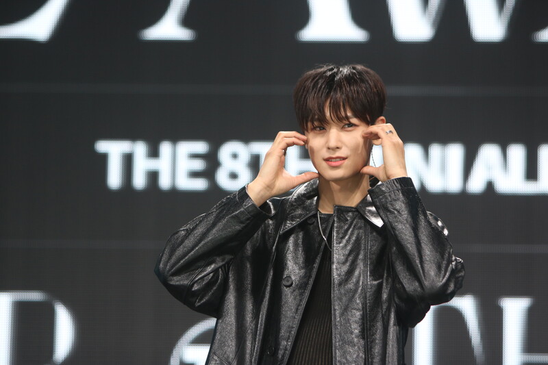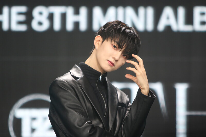 These are the individual photos of THE BOYZ Juyeon, Ju Haknyeon, and Q during the media showcase for their 8th mini album "BE AWAKE."
