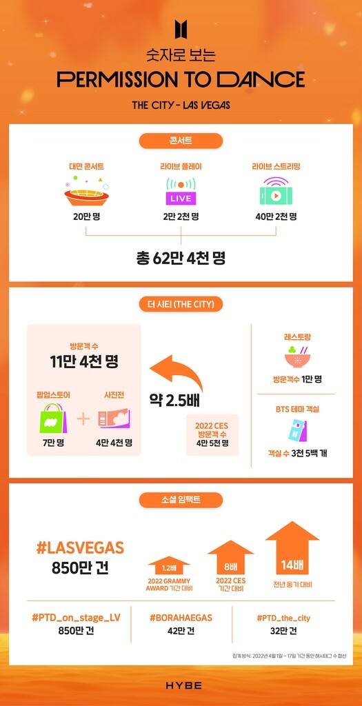 ▲ This photo, provided by HYBE, shows an infographic of BTS's Las Vegas concert. (PHOTO NOT FOR SALE) (Yonhap) |