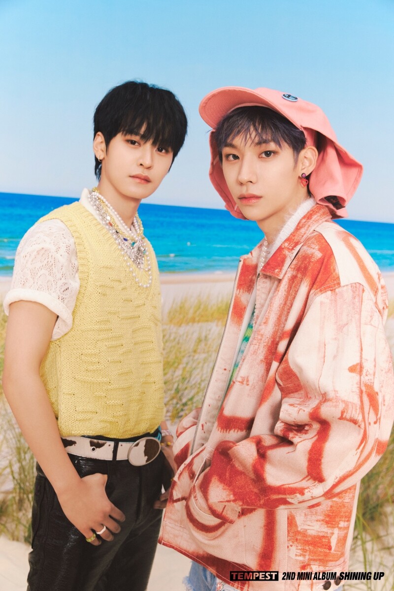 These photos, provided by Yuehua Entertainment, show concept photos of Tempest Hwarang and Taerae for their second mini album 'Shining Up', which will be released on August 29.