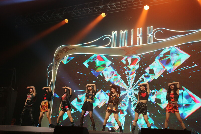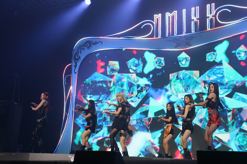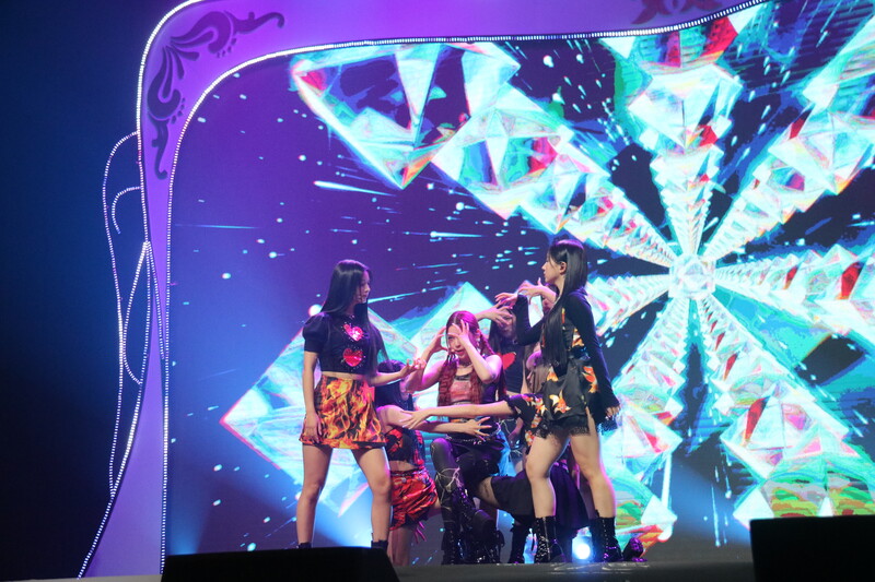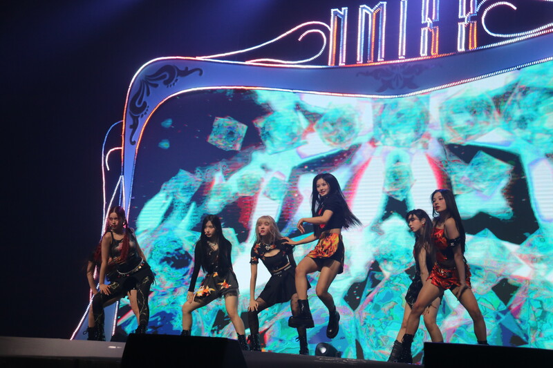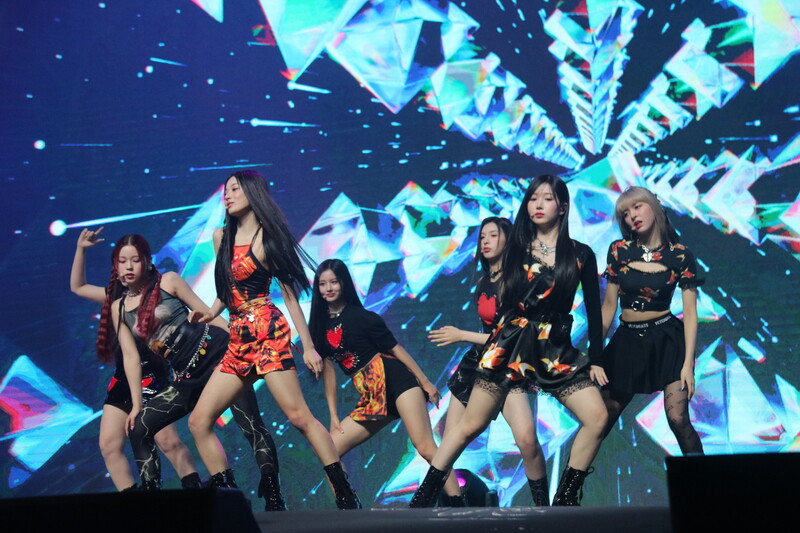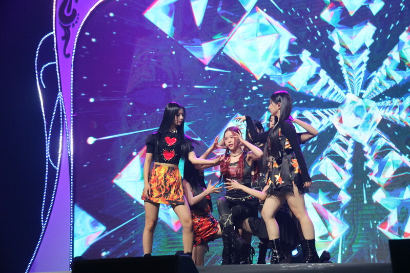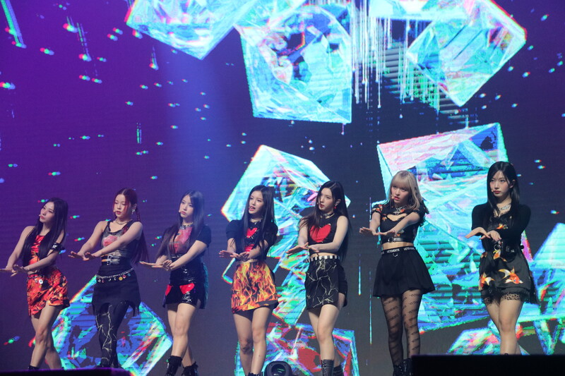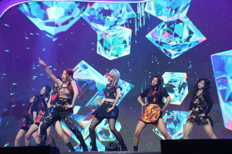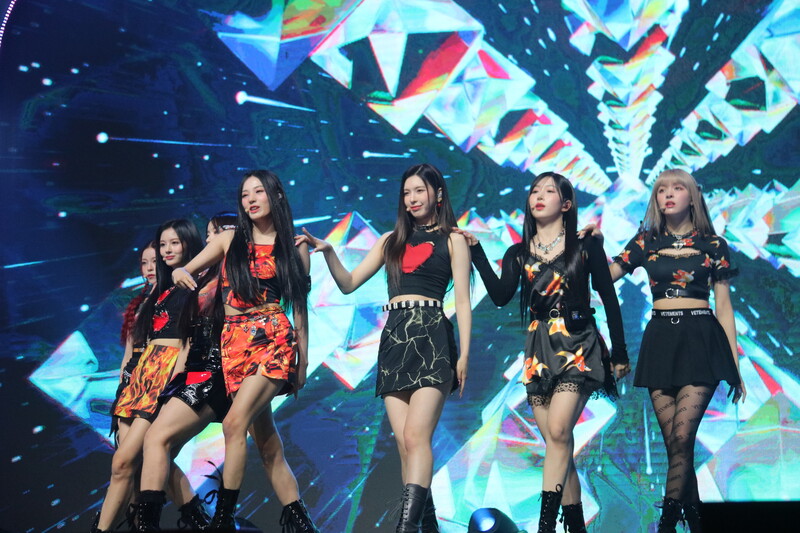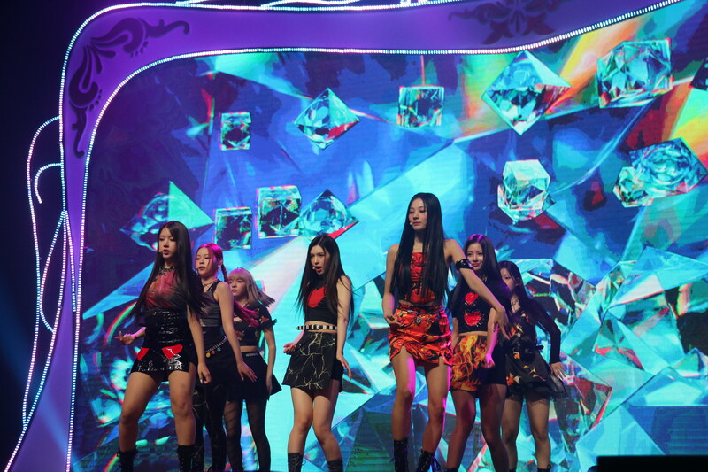 These photos, taken during the media showcase of NMIXX's upcoming second single album "ENTWURK" shows ENMIXX preforming their title track "DICE."