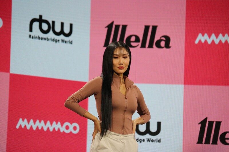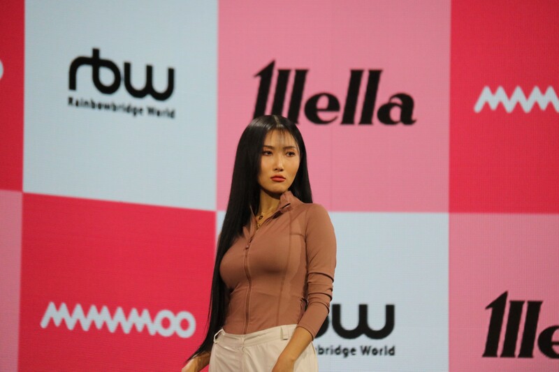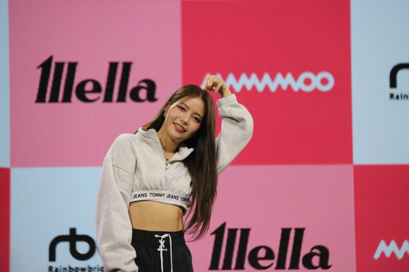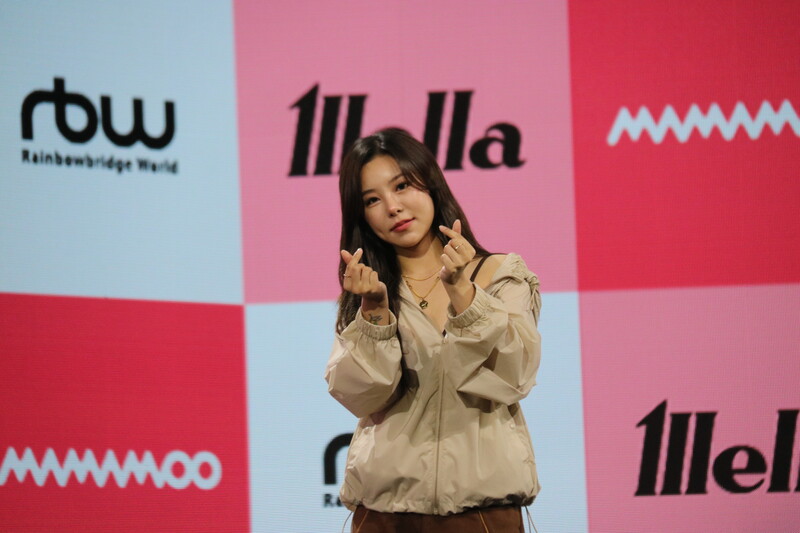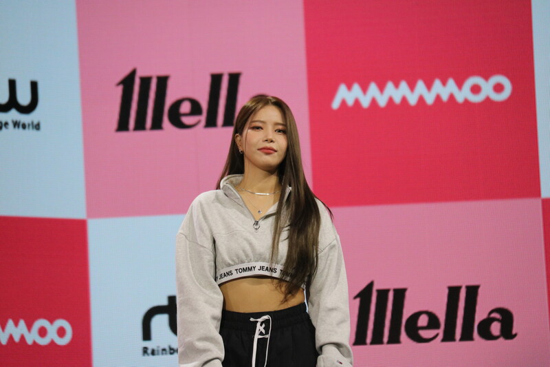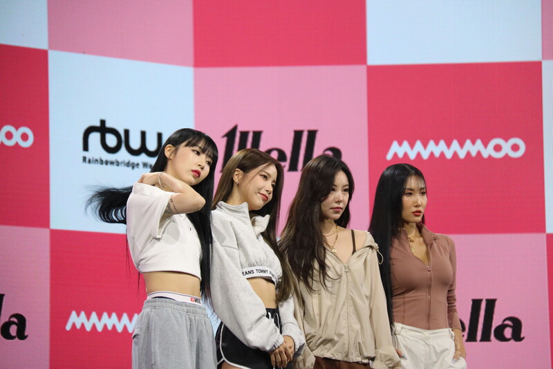 These photos show MAMAMOO posing for the press during their 12th mini album "MIC_ON" media showcase.