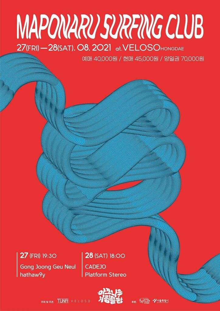 Meanwhile, on Aug. 27 and 28, a joint concert, titled "Maponaru Surfing Club," of four musicians representing Hongdae and Busan, will be held at Veloso Hongdae.