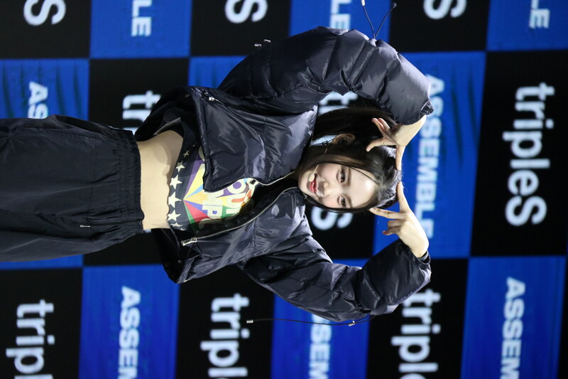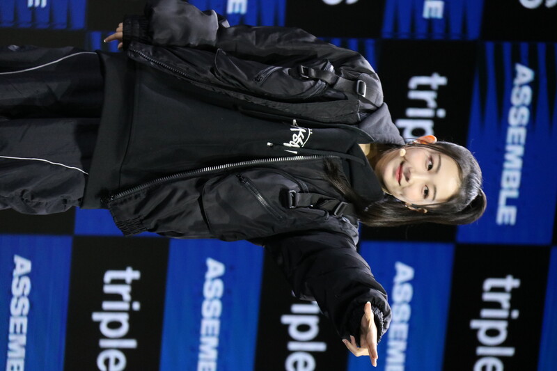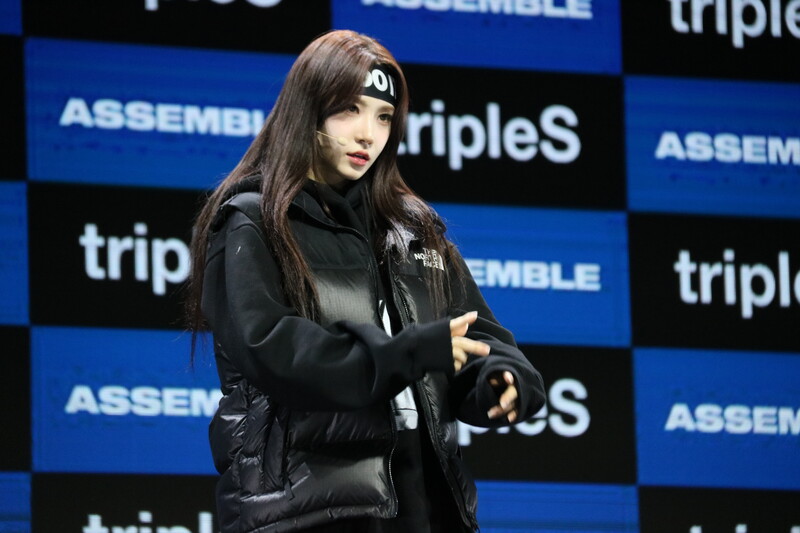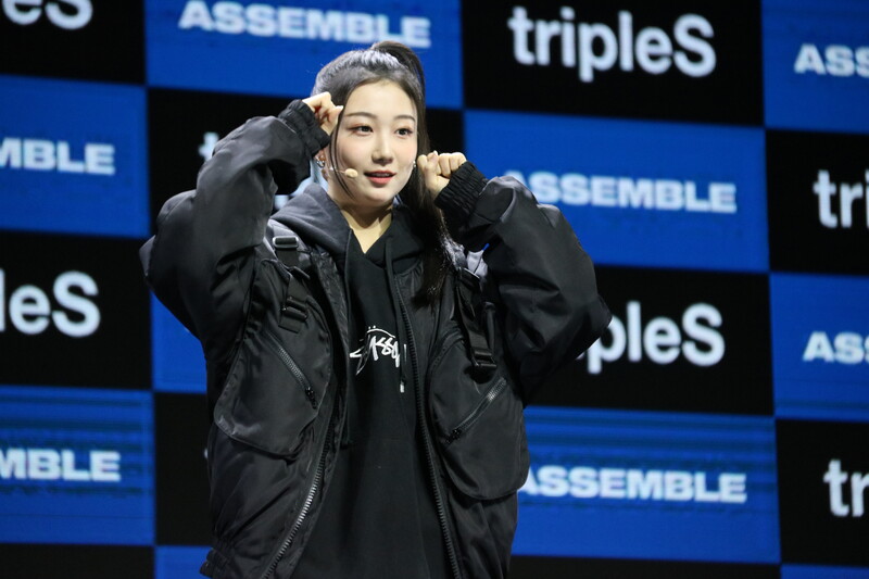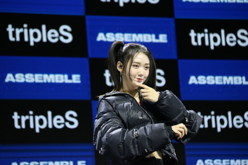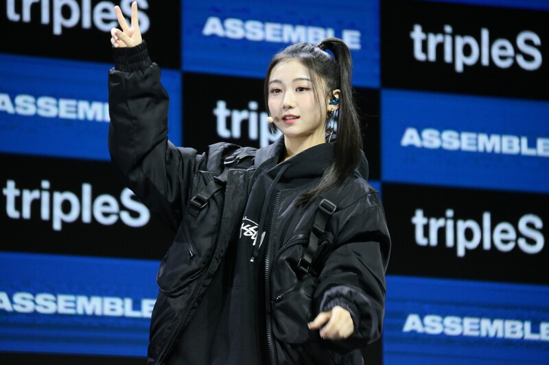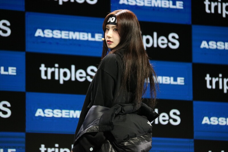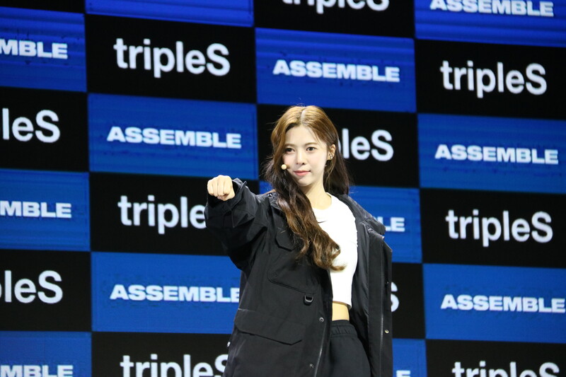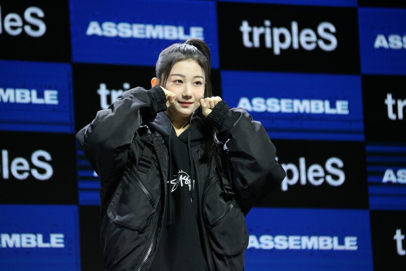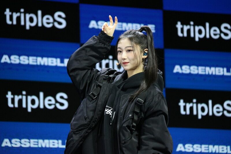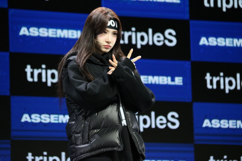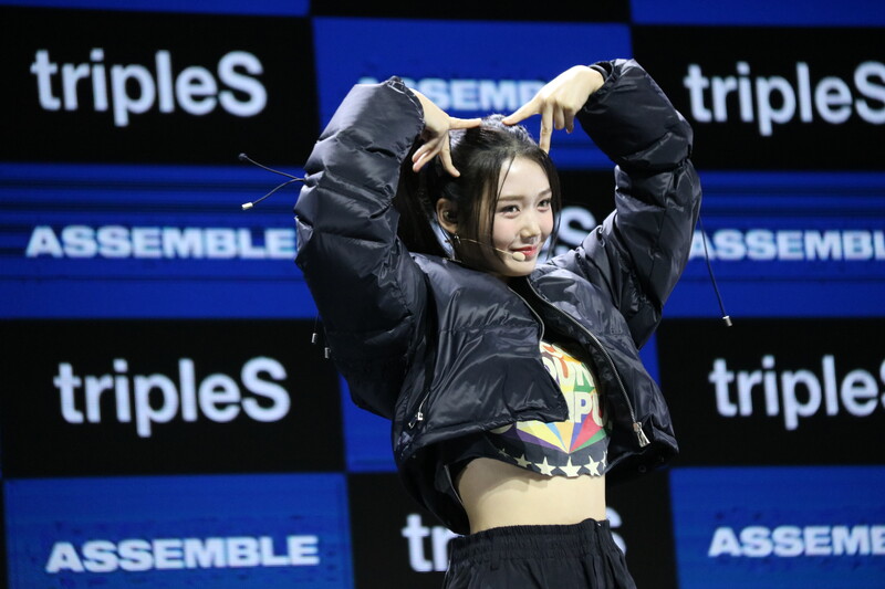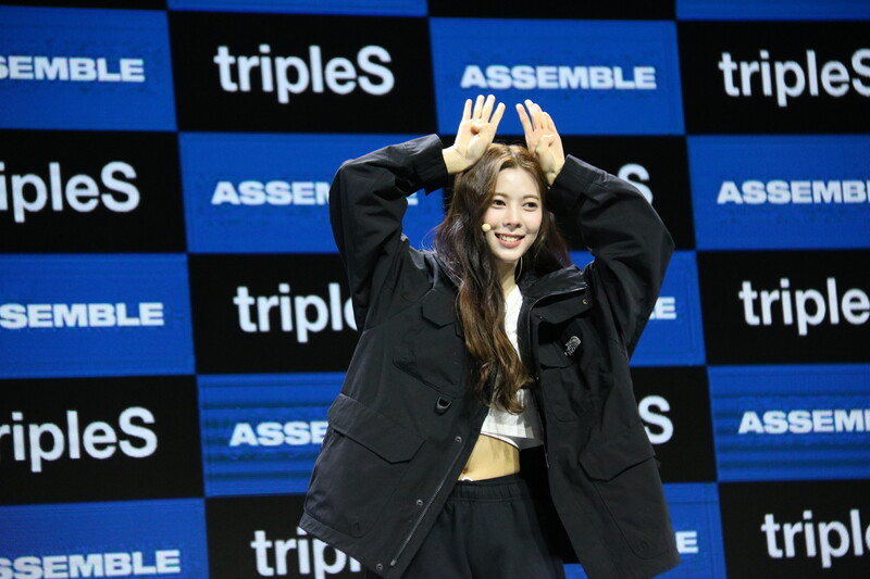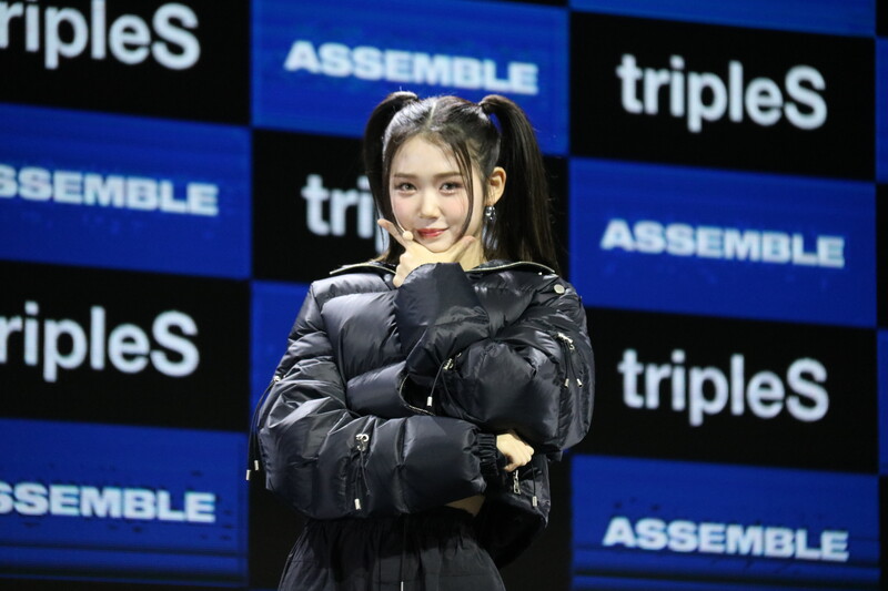 These photos show Kim Na-kyoung, Gong Yu-bin, Kaede, and Seo Da-hyun from the South Korean girl group TripleS at the press showcase of their first mini album 'ASSEMBLE,' which was held at the Blue Square Master Hall in Yongsang-gu, Seoul at Feb. 13.