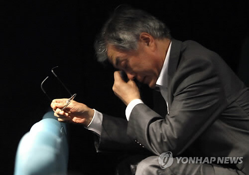 | ▲ This photo shows President Moon Jae-in wiping tears after watching "Gwanghae, The Man Who Became King" on Oct. 12, 2012. (PHOTO NOT FOR SALE) (Yonhap) |