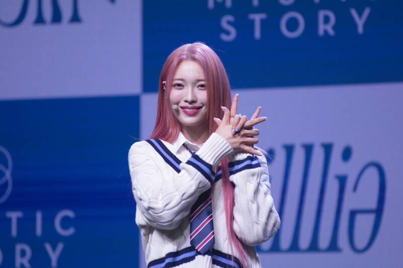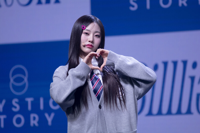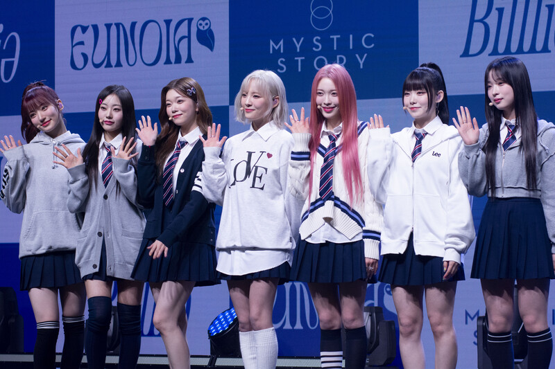 These photos taken during the media showcase of K-pop girl group Billlie's 4th mini album "The Billage of Perception Chapter Three" show members posing for their individual and group photos.