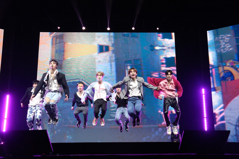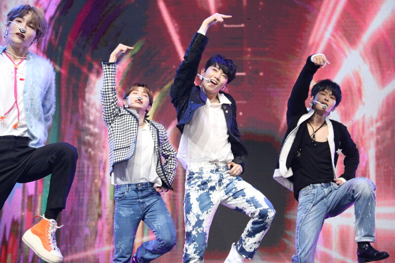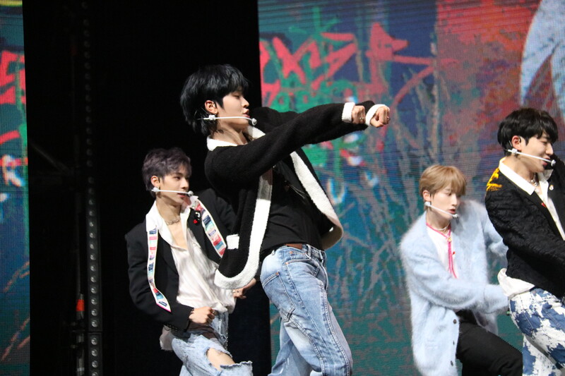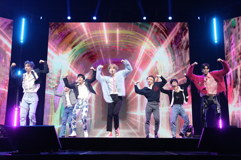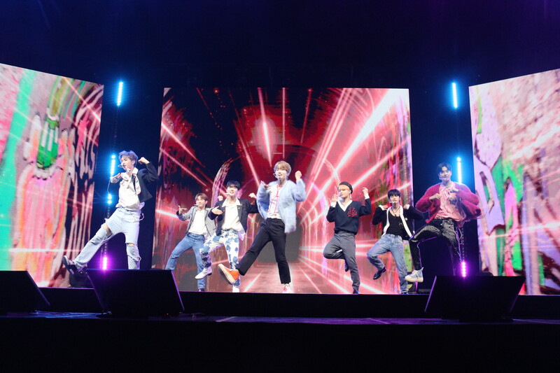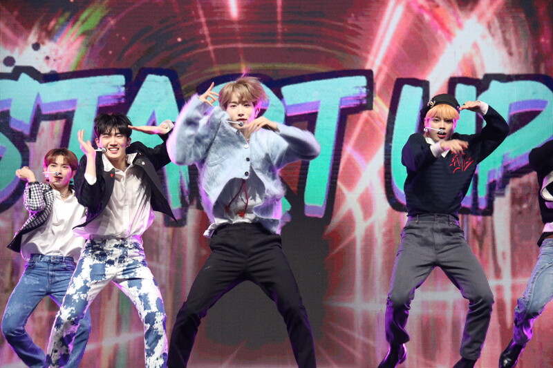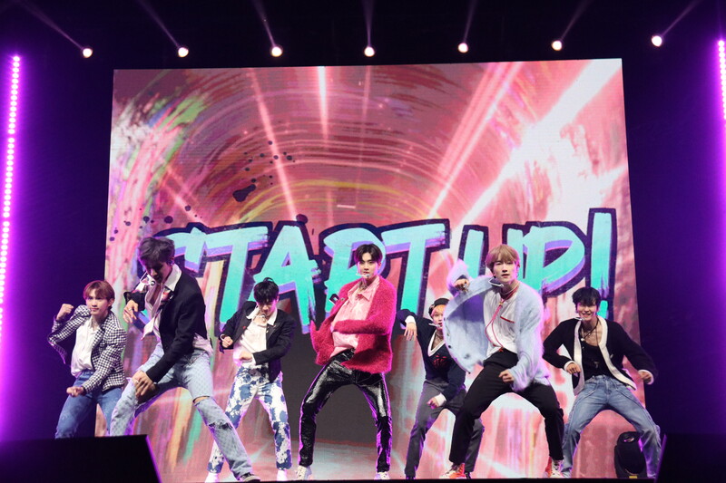 These photos show boy group TEMPEST performing 'START UP' at media showcase for second mini album 'SHINING UP'