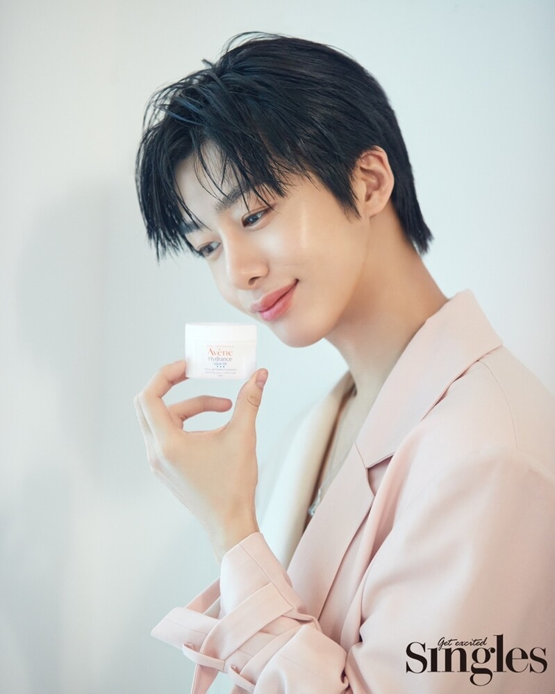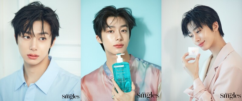 These photos, provided by W&, shows photos of Hyungwon during a photo shoot for Avene with magazine "Singles."
