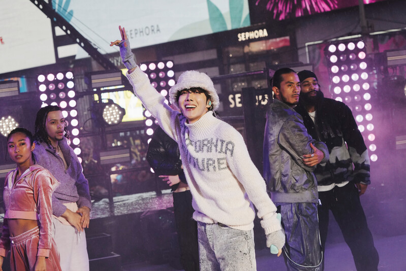 J-Hope, a member of K-pop sensation BTS, performs at Dick Clark's New Year's Rockin' Eve at Times Square in New York City on Dec. 31, 2022. (local time). (Yonhap)