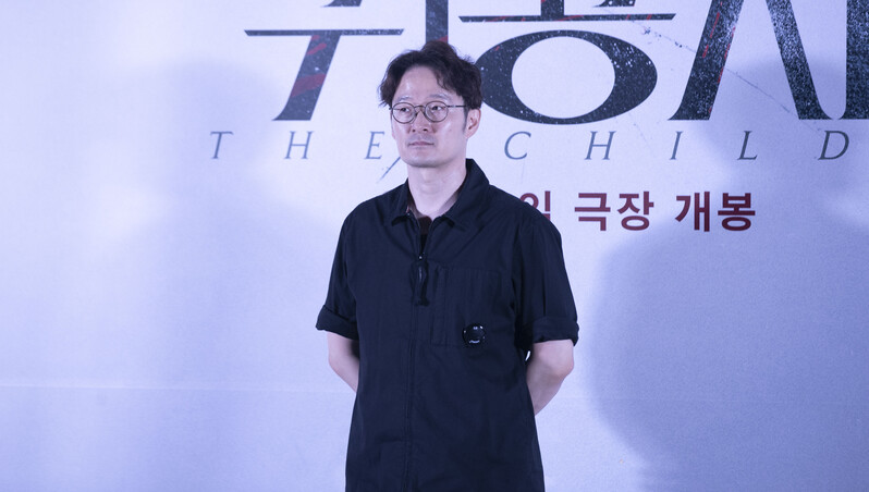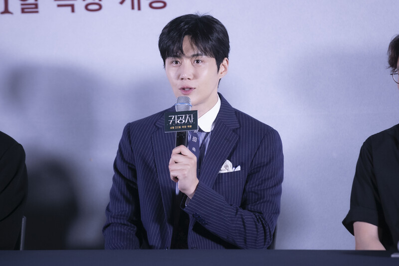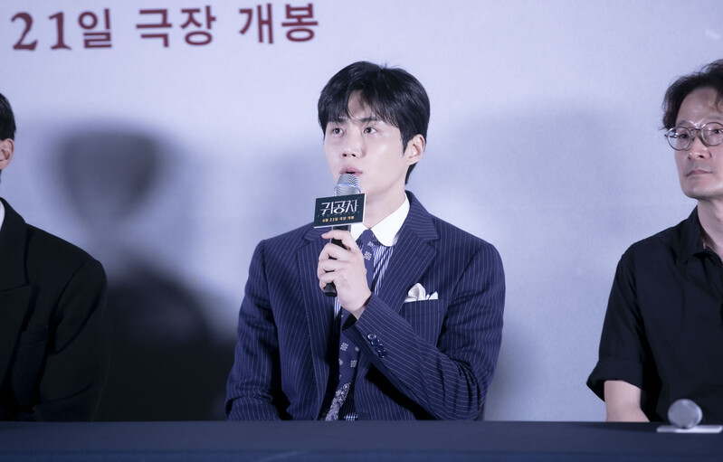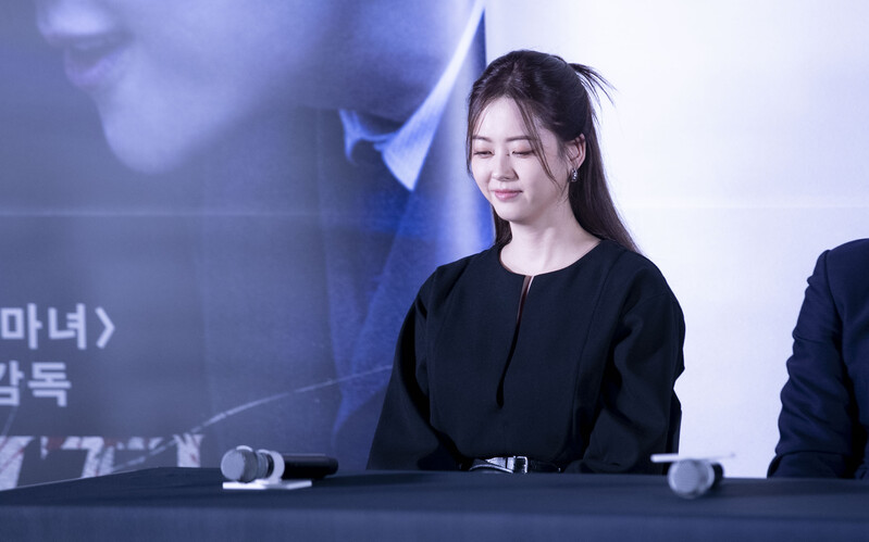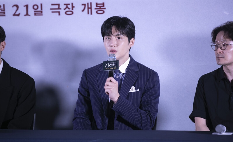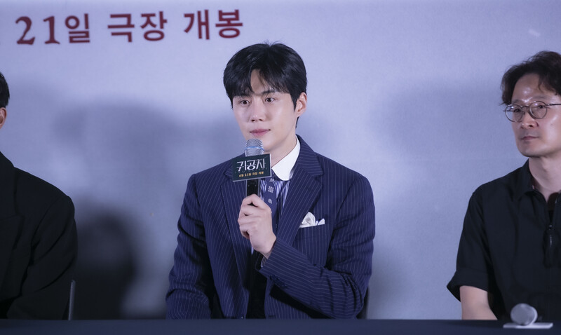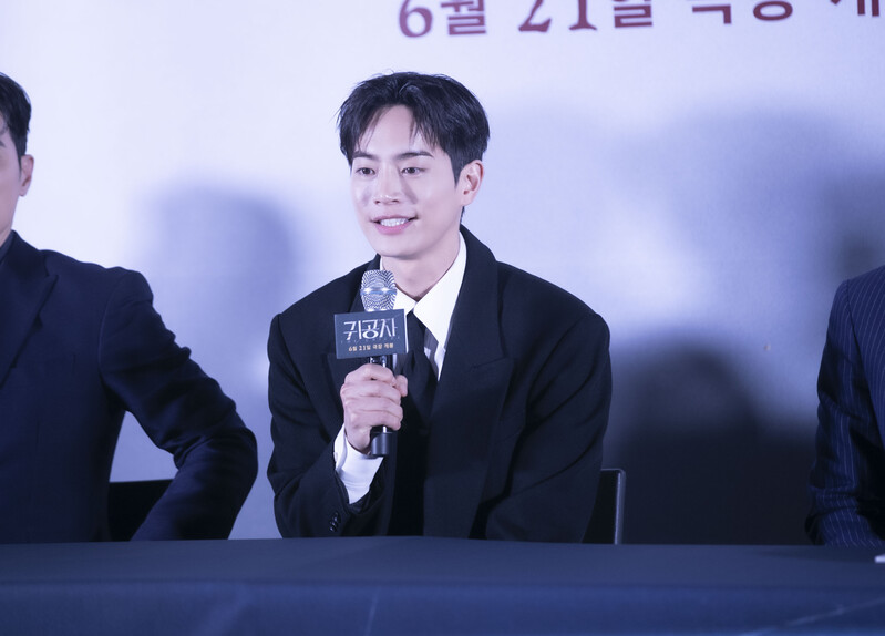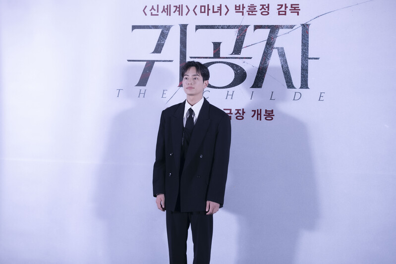 These photos taken during the press conference of the upcoming movie "The Childe" show members of the cast answering questions and posing for their individual and group photos.