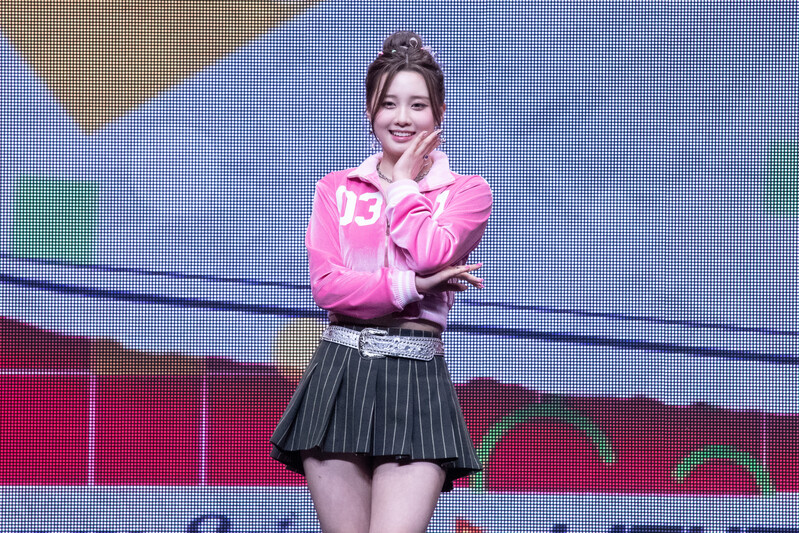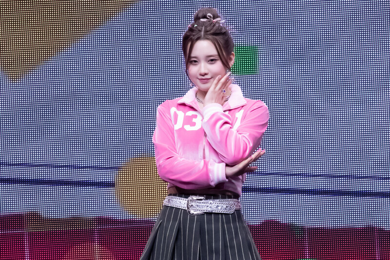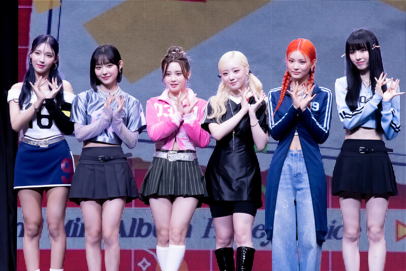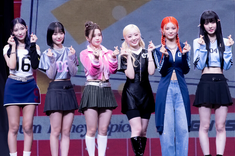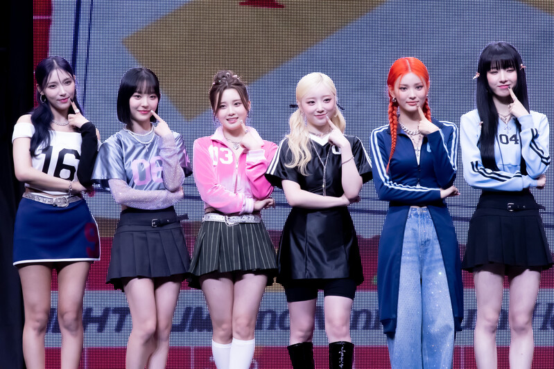 These photos taken during the media showcase of K-pop girl group Lightsum's second mini album "Honey or Spice" show members posing for their individual and group photos.