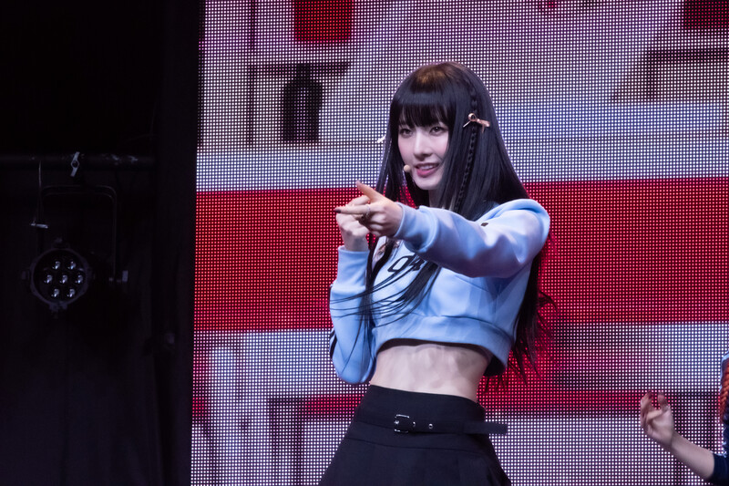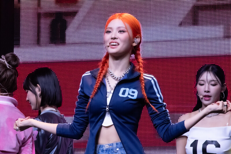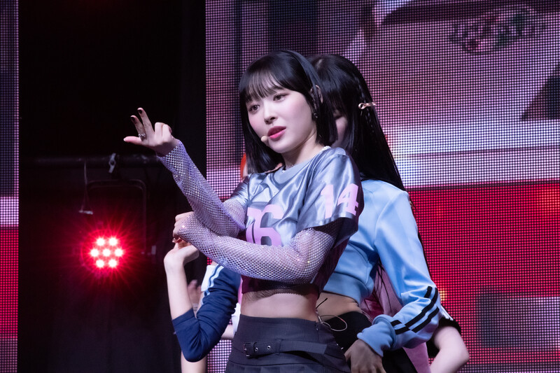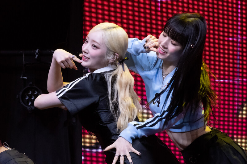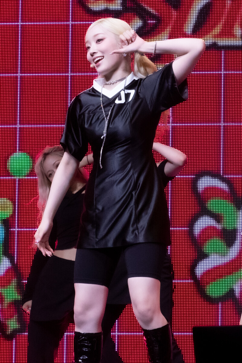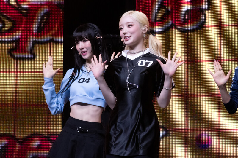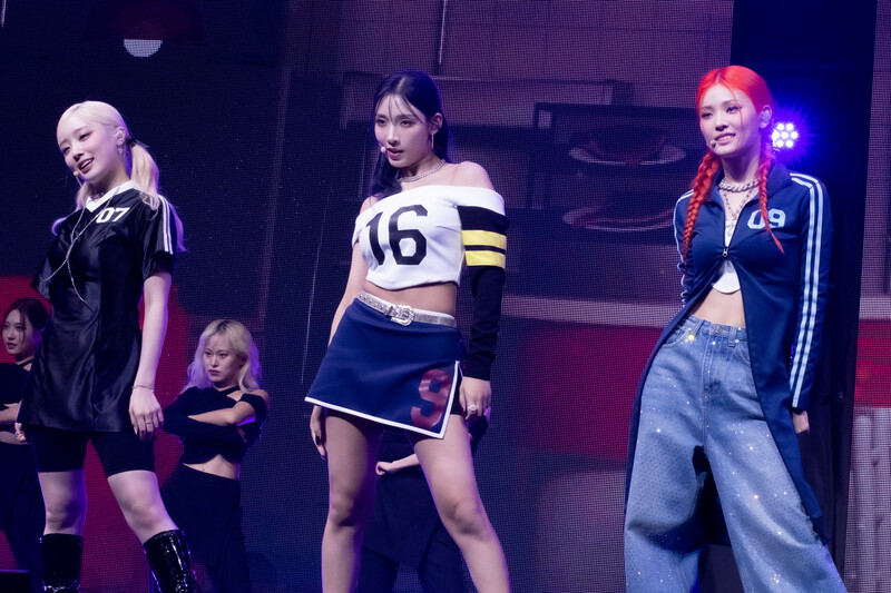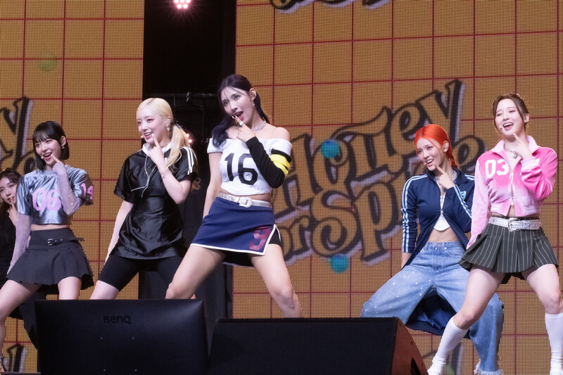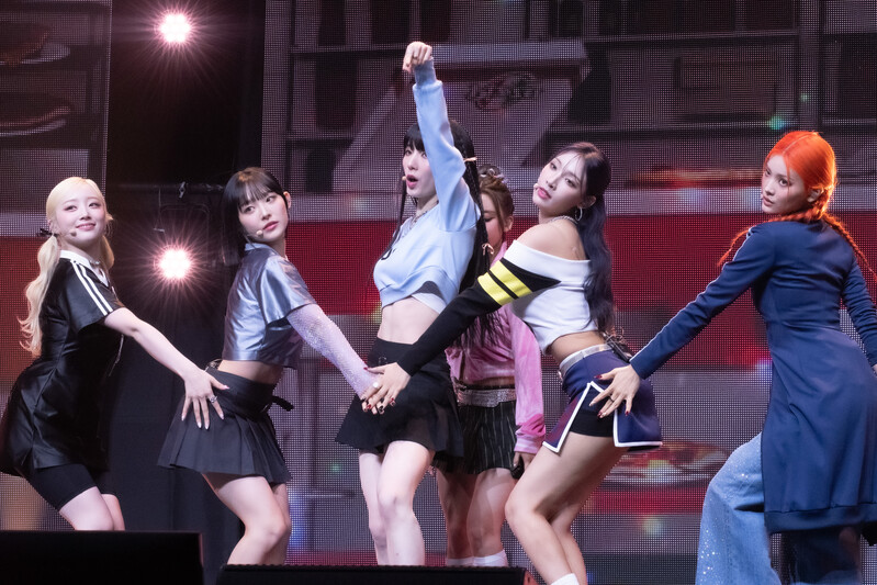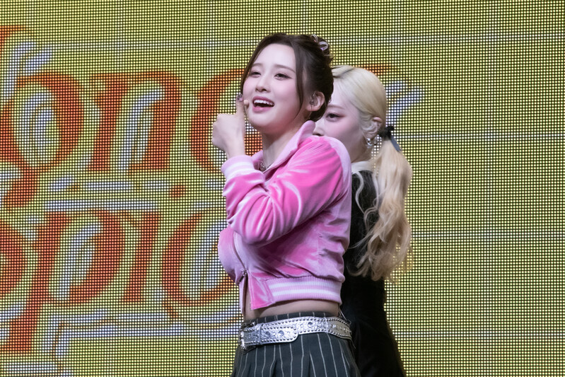 These photo taken during the media showcase of K-pop girl group Lightsum's second mini album "Honey or Spice" show members performing their title track "Honey or Spice."