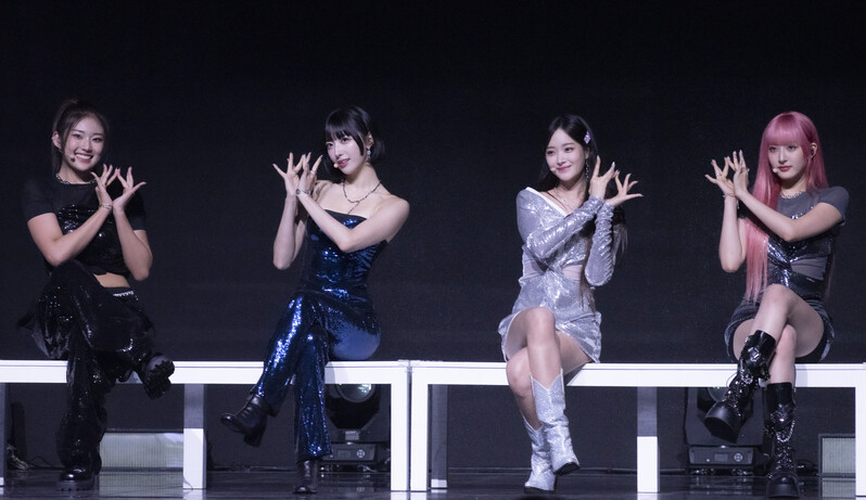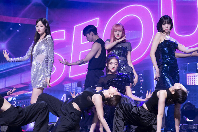 These photos taken during the media showcase of K-pop girl group H1-Key show members performing their double title tracks "Seoul" and "Time To Shine."