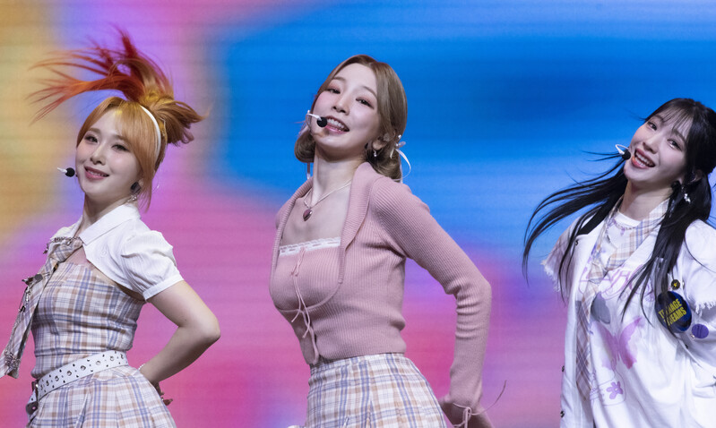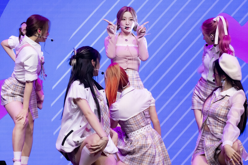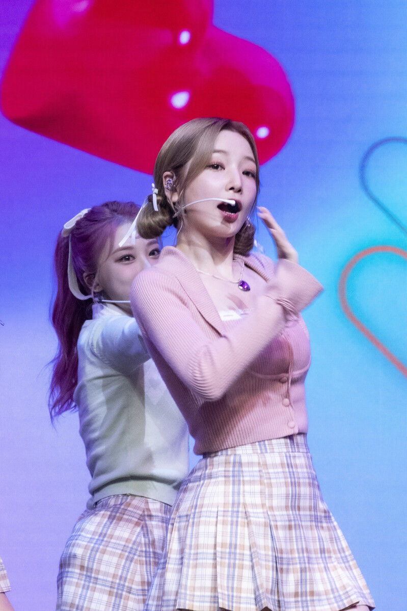 These photos taken during the media showcase of K-Pop girl group Rocket Punch's third single album 'Boom' show members performing their title track "Boom" and one of the tracks included within the album "Alive."