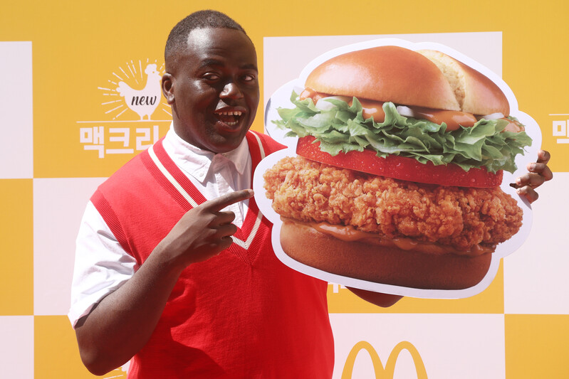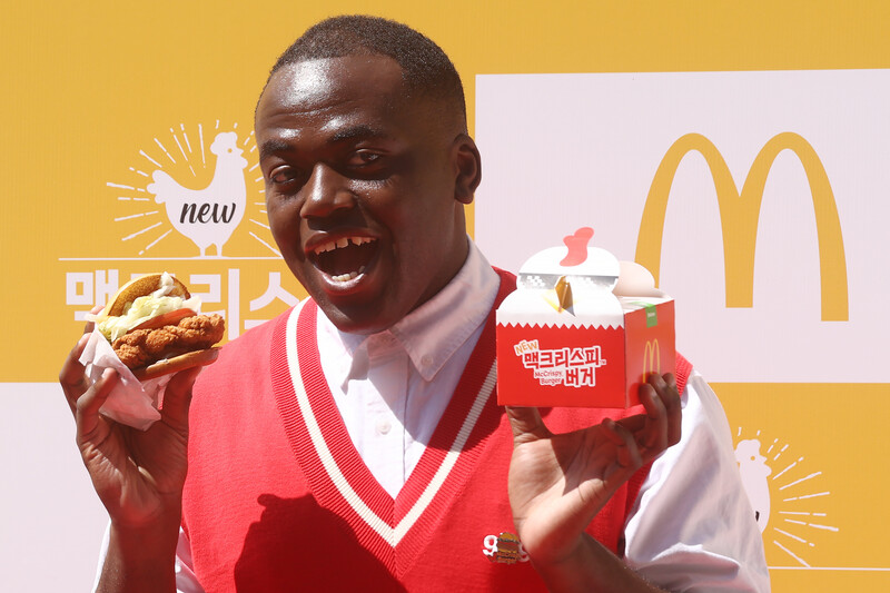 Congolese entertainer Yiombi Jonathan poses for a photo during a publicity event in Seoul on May 26, 2022 to promote the multinational fast food brand McDonalds. (Yonhap)