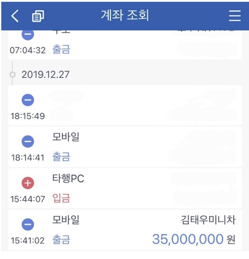 정려원이 김 씨에게 차량을 선물 받았다는 의혹에 대해서는 "중고차를 구매한 것"이라며 김 씨에게 3천500만원을 입금한 내역으로 추정되는 내역의 캡처본을 공개했다.